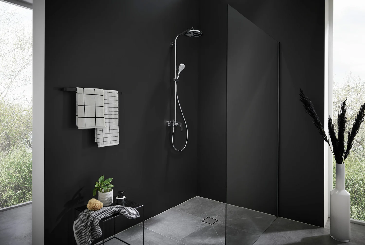 - Lieferumfang: Showerpipe mit Einhebelmischer, Rosetten, S-Anschlüsse, Befestigungsmaterial, Montageanleitung