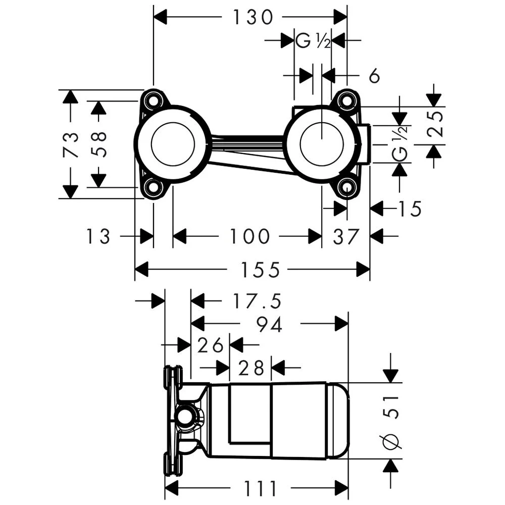 hansgrohe Grundkörper für Einhebel-Waschtischmischer Unterputz