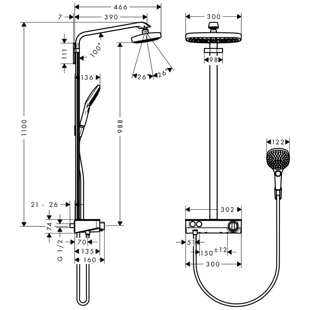 hansgrohe Raindance Select E 300 2jet Showerpipe