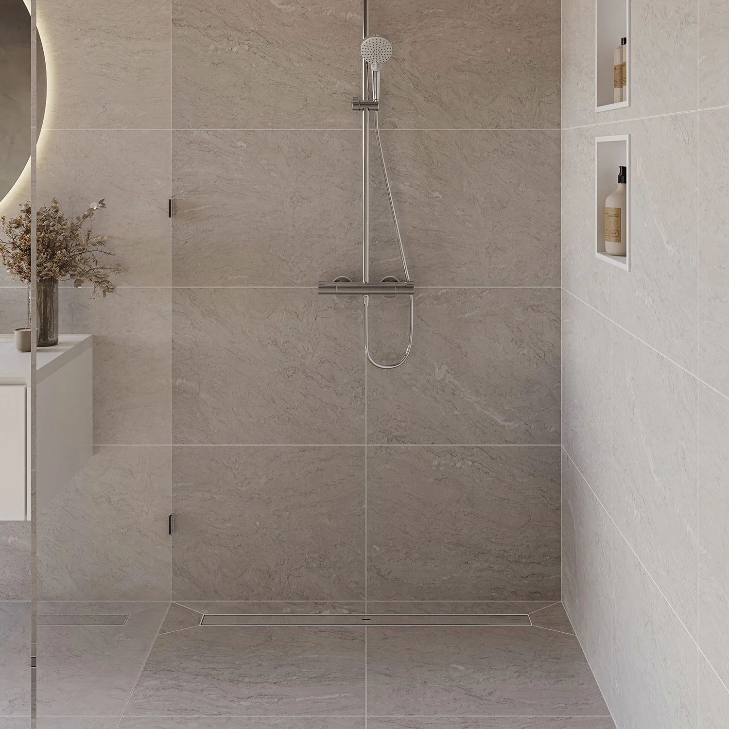 - Zeitlos schön: RainDrain Allround Duschrinne mit Oberfläche in gebürstetem Edelstahl