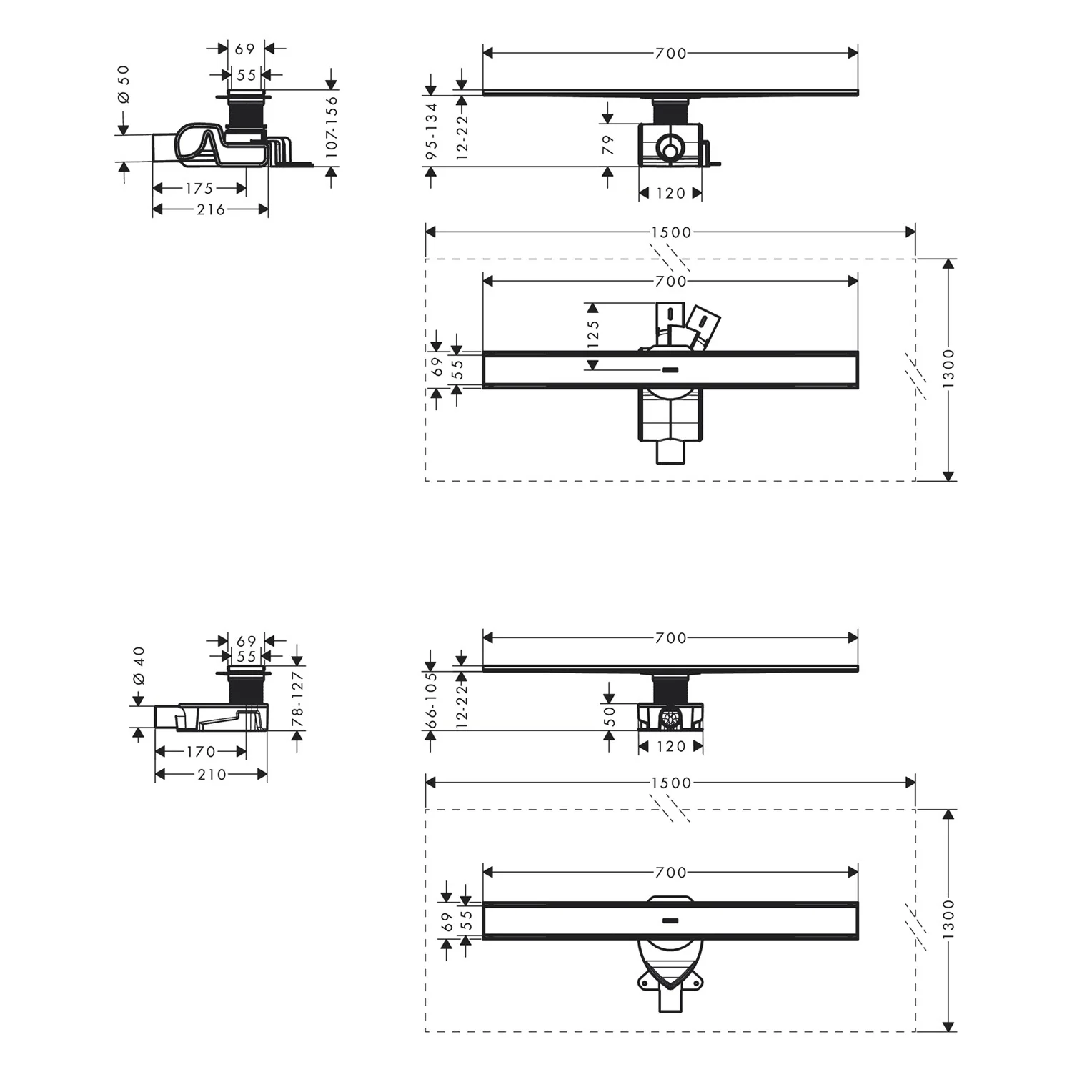 hansgrohe RainDrain Allround Komplettset Duschrinne 70 cm für Standard-/flache Installation
