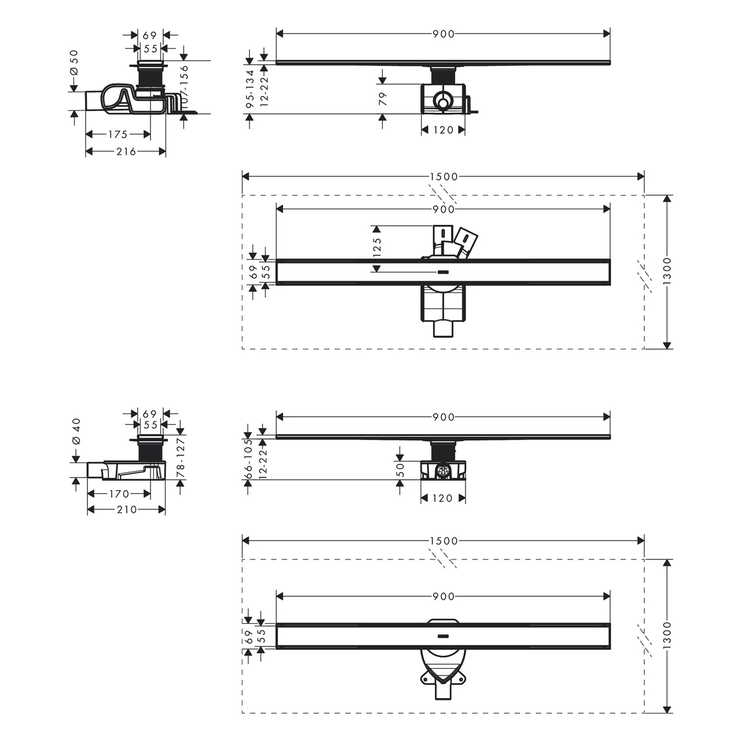 hansgrohe RainDrain Allround Komplettset Duschrinne 90 cm für Standard-/flache Installation
