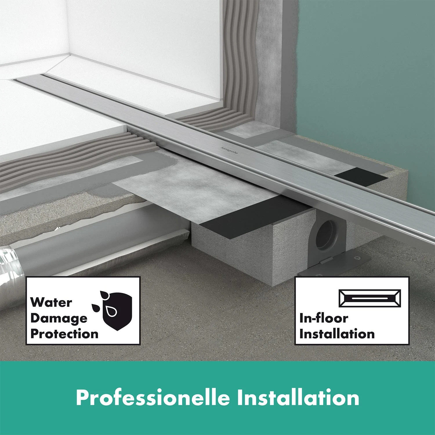 - Mit hoher Ablaufleistung: Fertigset mit Duschrinne, Installationsset und Dryphon für die Montage frei im Duschbereich