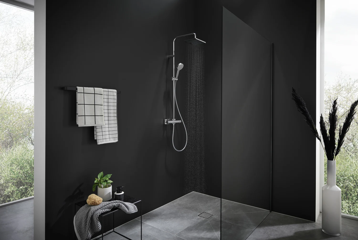 - starkes Design fürs kleine Budget: der geometrisch gestaltete Vernis Shape Duschkopf bringt Komfort und Wasserspaß ins Bad