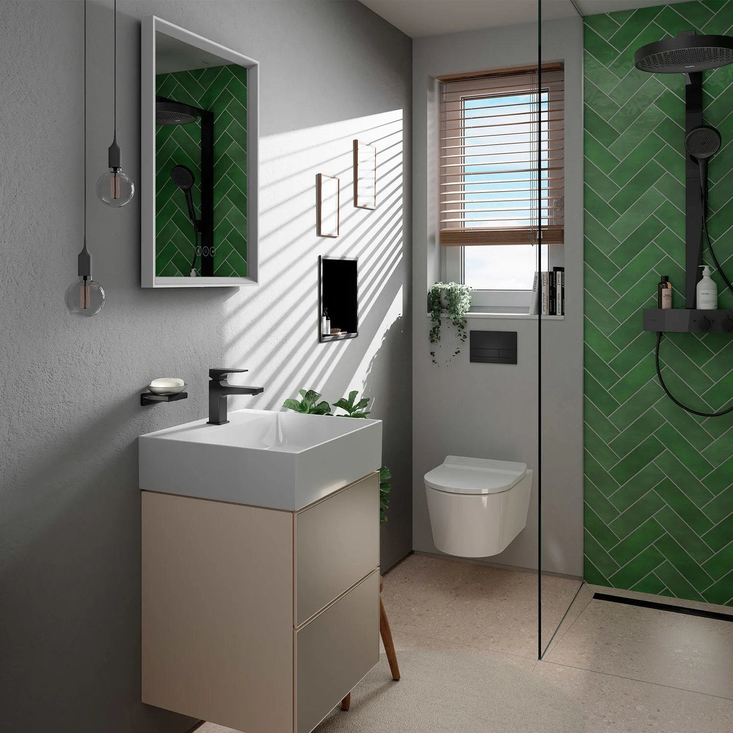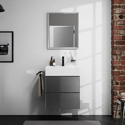 hansgrohe Xarita E Badspiegel 60 x 70 cm in mattweiß mit Berührungssensor