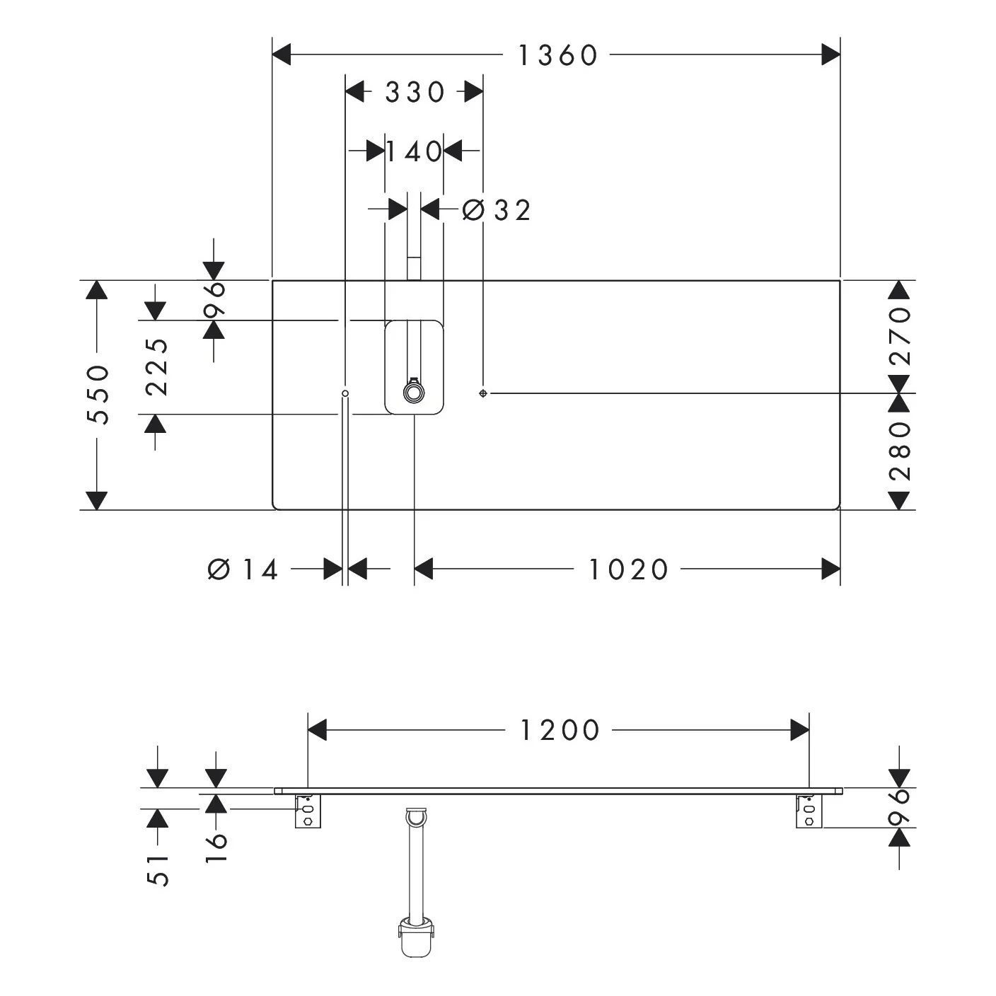hansgrohe Xelu Q Konsole mit Ausschnitt links 136 x 55 cm, für Aufsatzwaschtisch mit Hahnloch