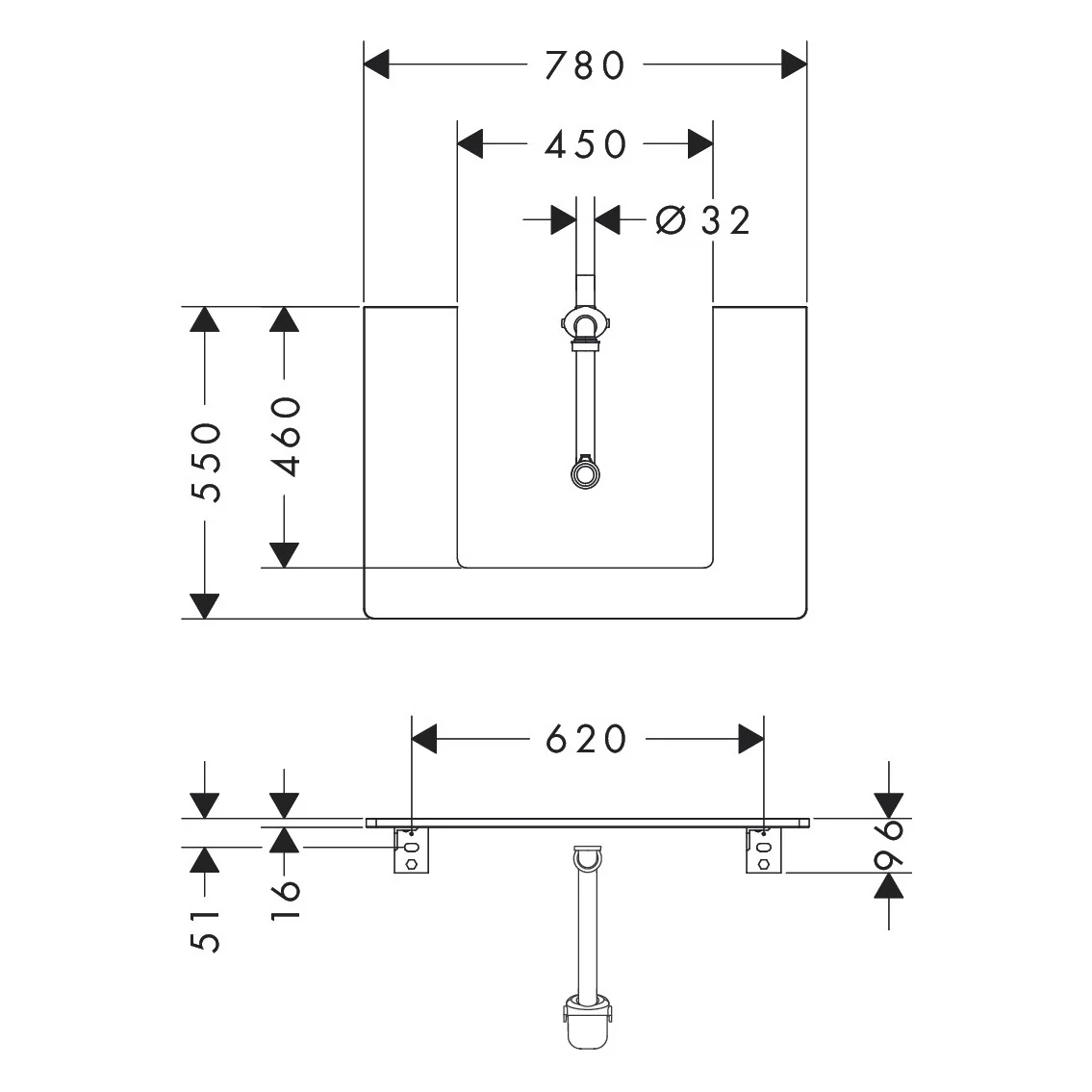 hansgrohe Xelu Q Konsole mit Ausschnitt mittig 78 x 55 cm, für Aufsatzwaschtisch geschliffen 50 x 48 cm