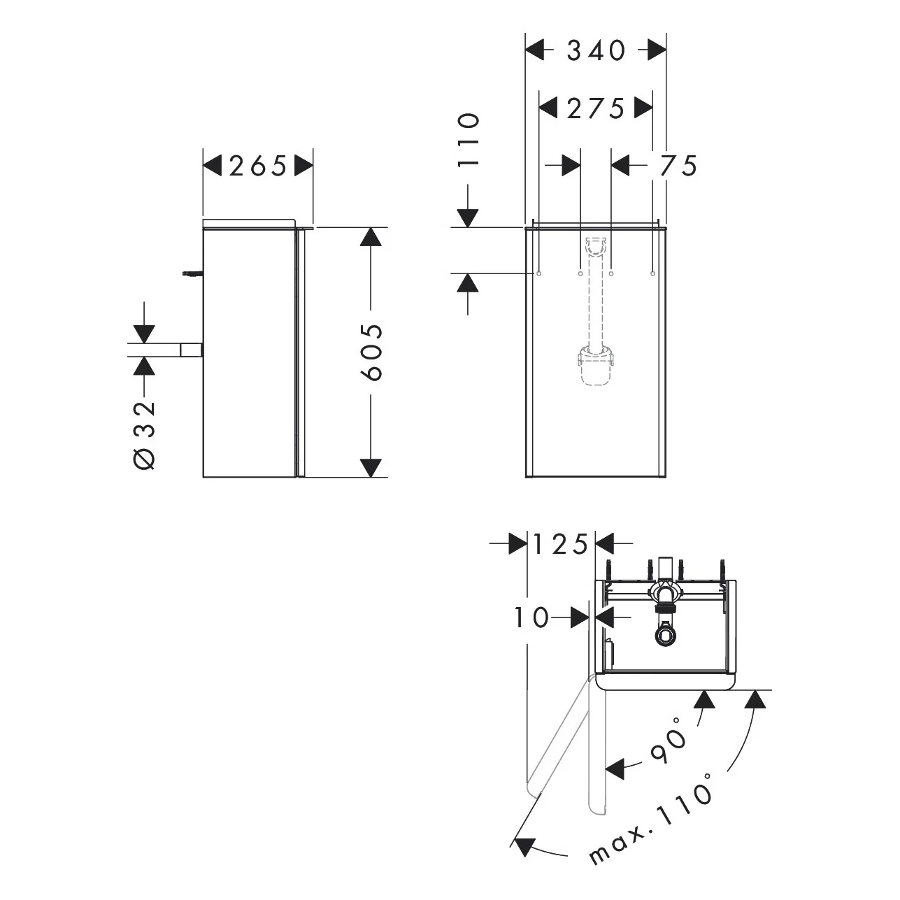 hansgrohe Xelu Q Waschtischunterschrank 34 x 60,5 cm, 1 Tür mit Anschlag links, Griff chrom