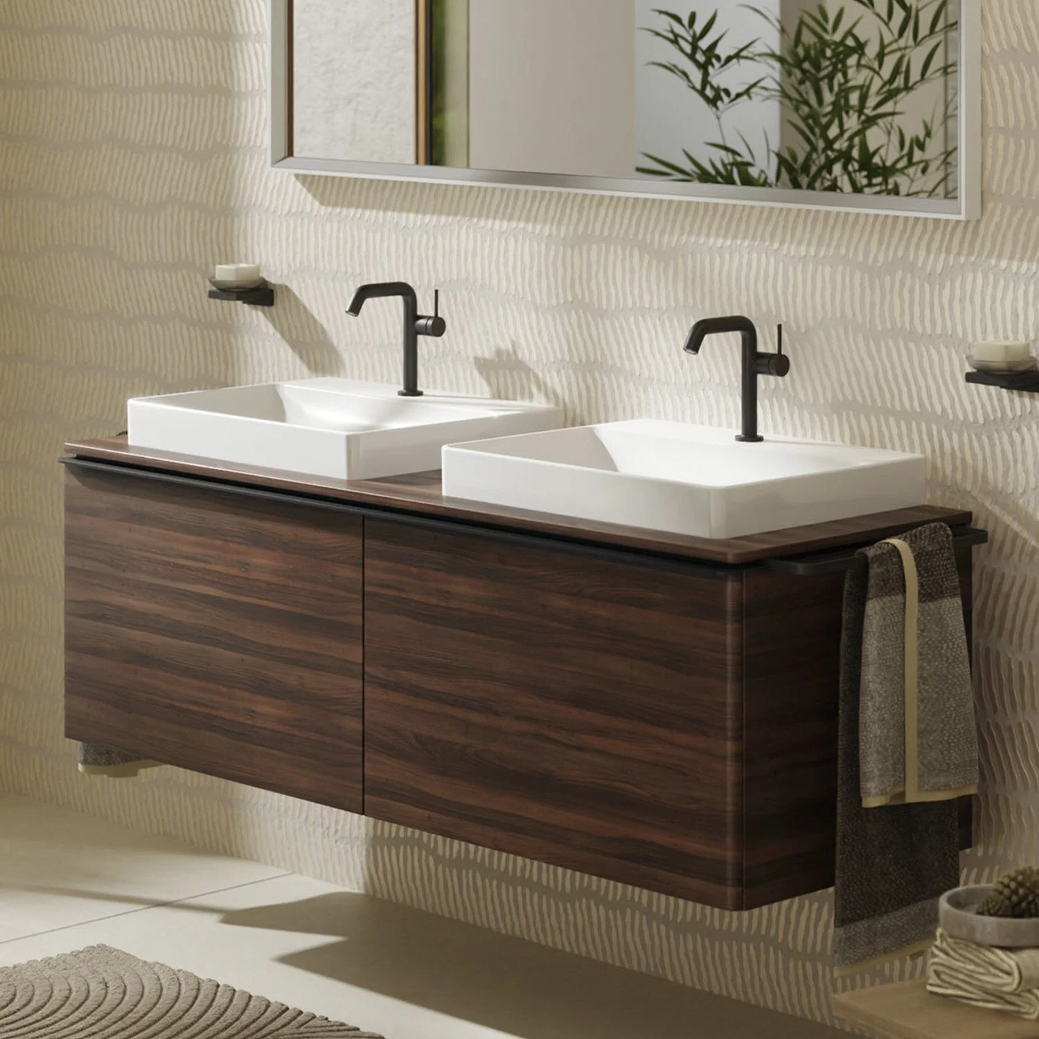 hansgrohe Xelu Q Waschtischunterschrank für Konsole 156 x 48,5 cm, 2 Schubkästen, Griff mattschwarz