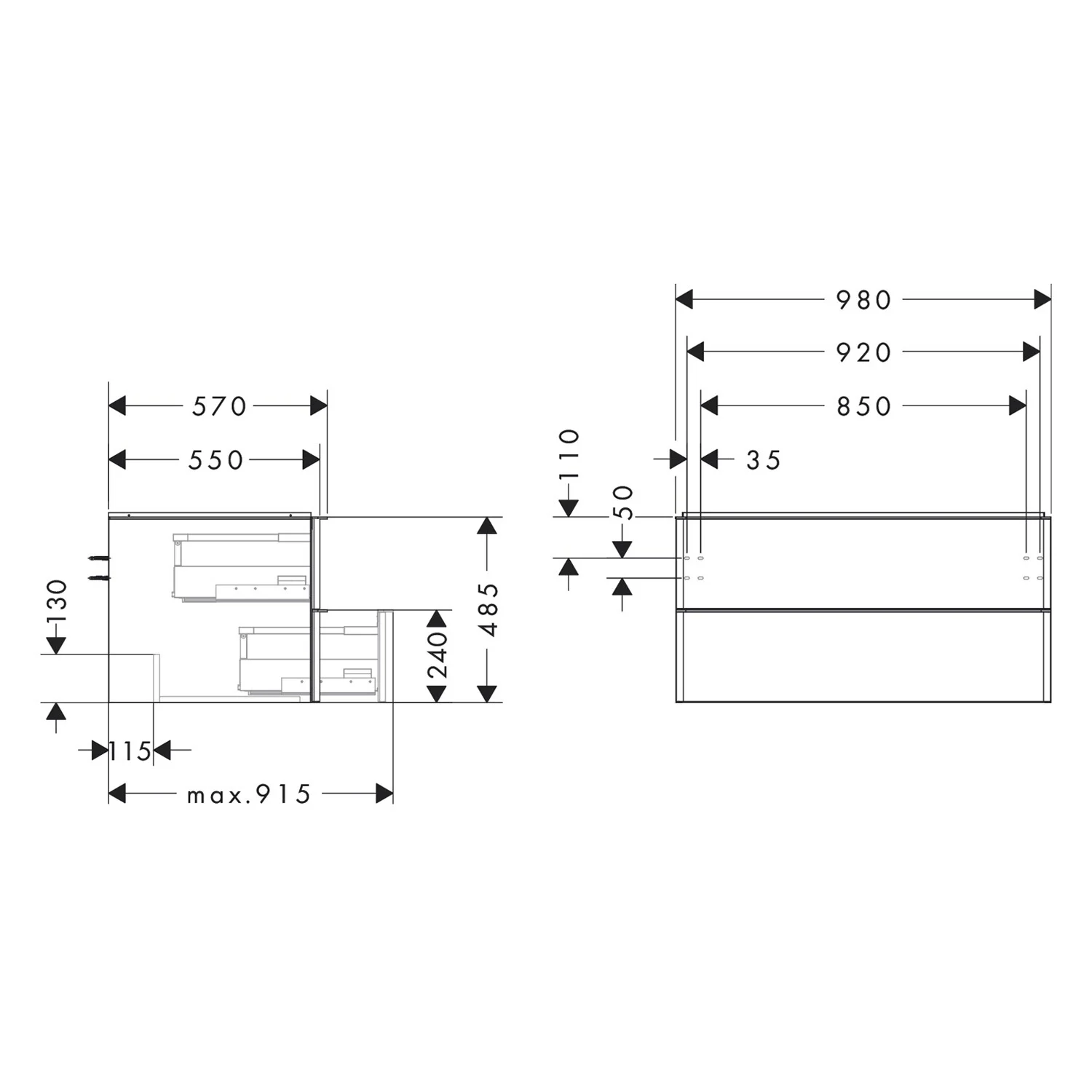hansgrohe Xelu Q Waschtischunterschrank für Konsole 98 x 48,5 cm, 2 Schubkästen, Griff mattweiß