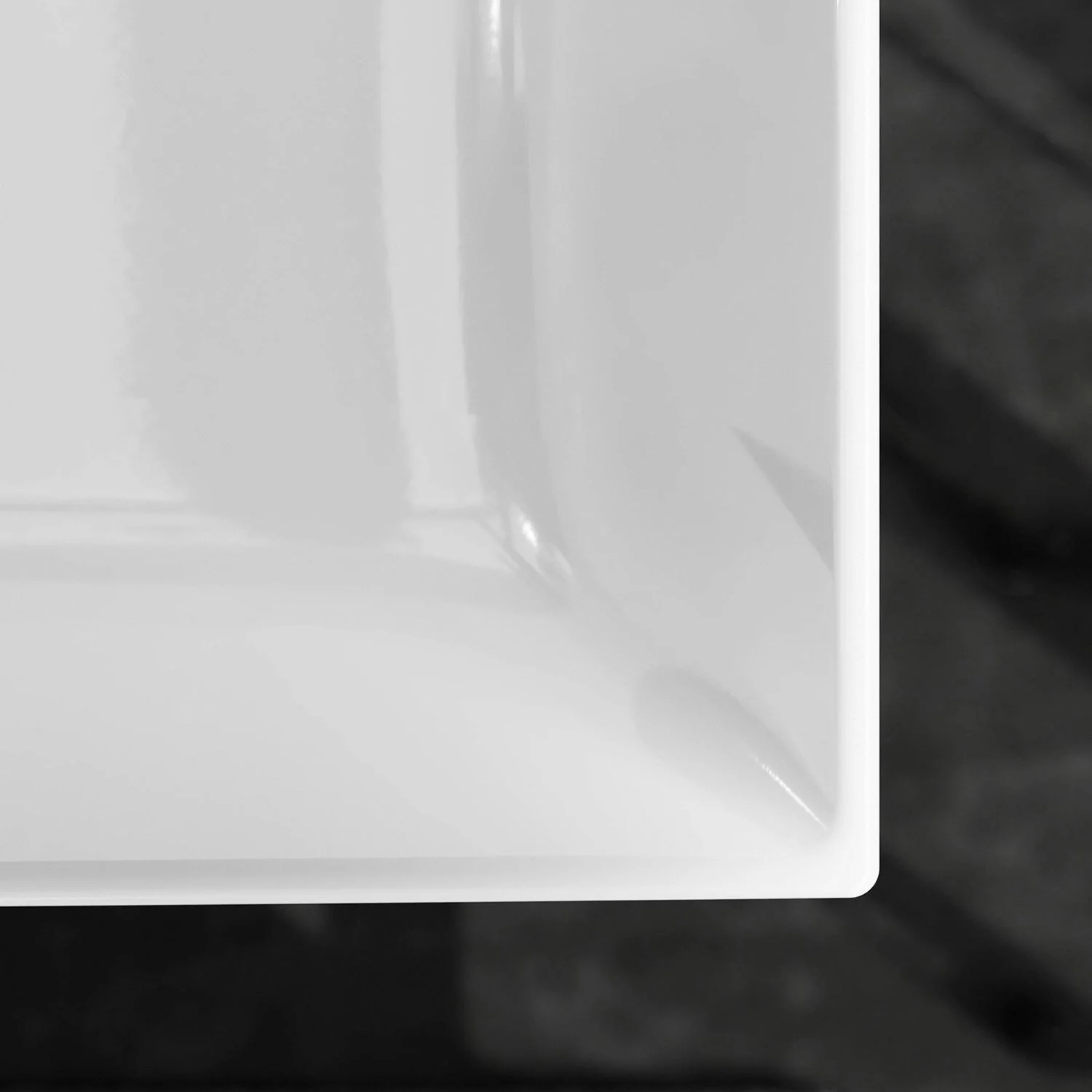 - Ohne Hahnloch – für wandmontierte oder freistehende Armaturen geeignet