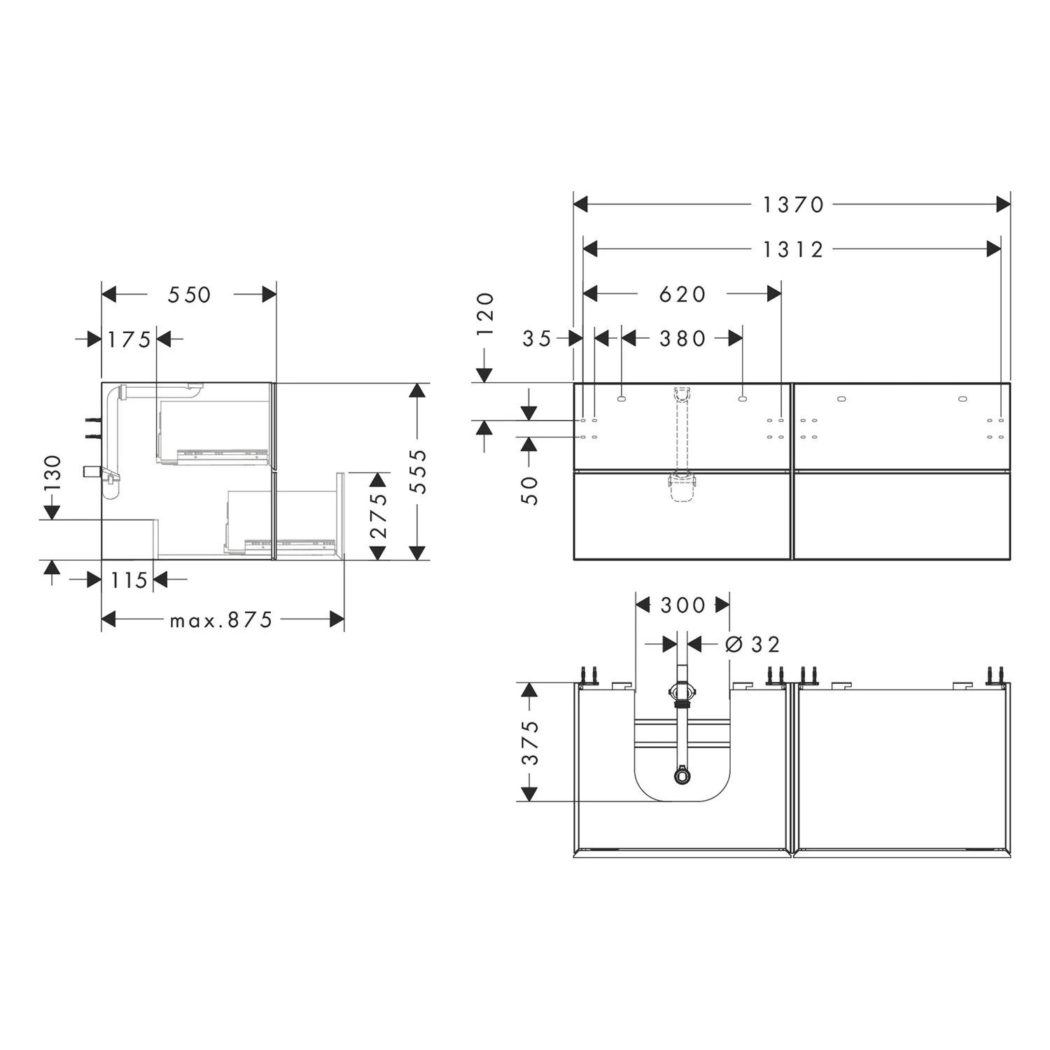 hansgrohe Xevolos E Waschtischunterschrank 137 x 55 cm mit 4 Schubkästen für Konsolen und Aufsatzwaschtisch links