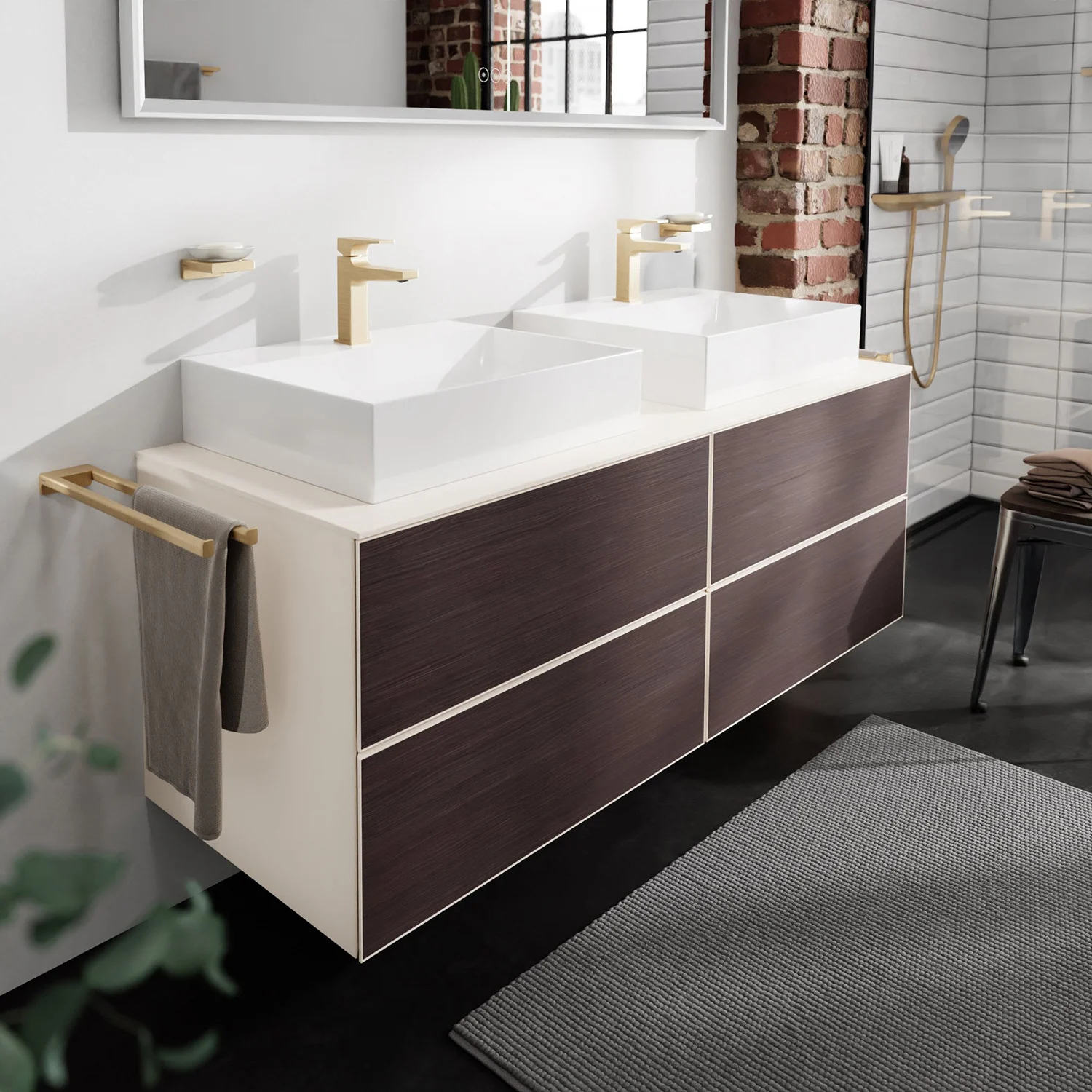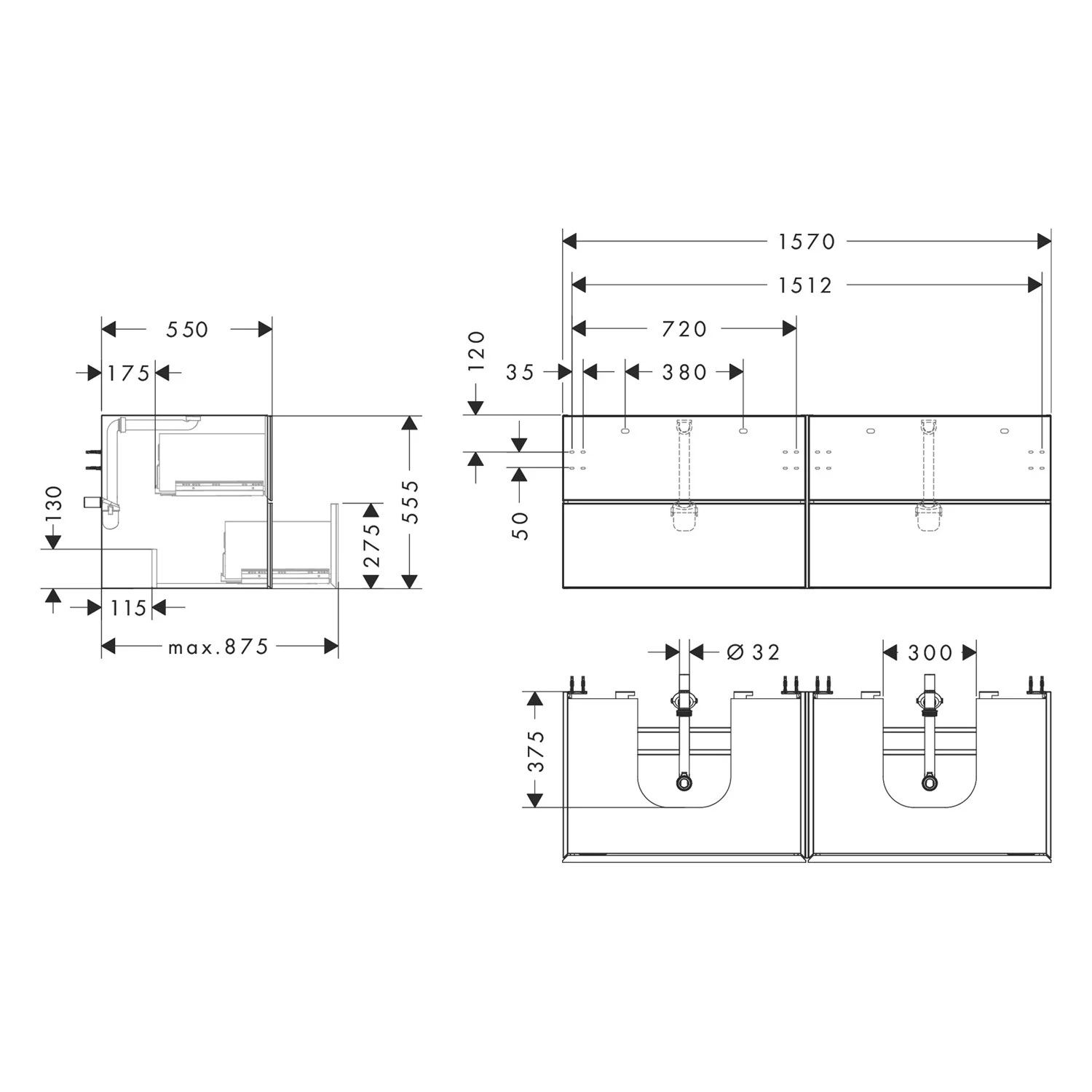 hansgrohe Xevolos E Waschtischunterschrank 157 x 55 cm mit 4 Schubkästen für Konsolen und 2 Aufsatzwaschtische
