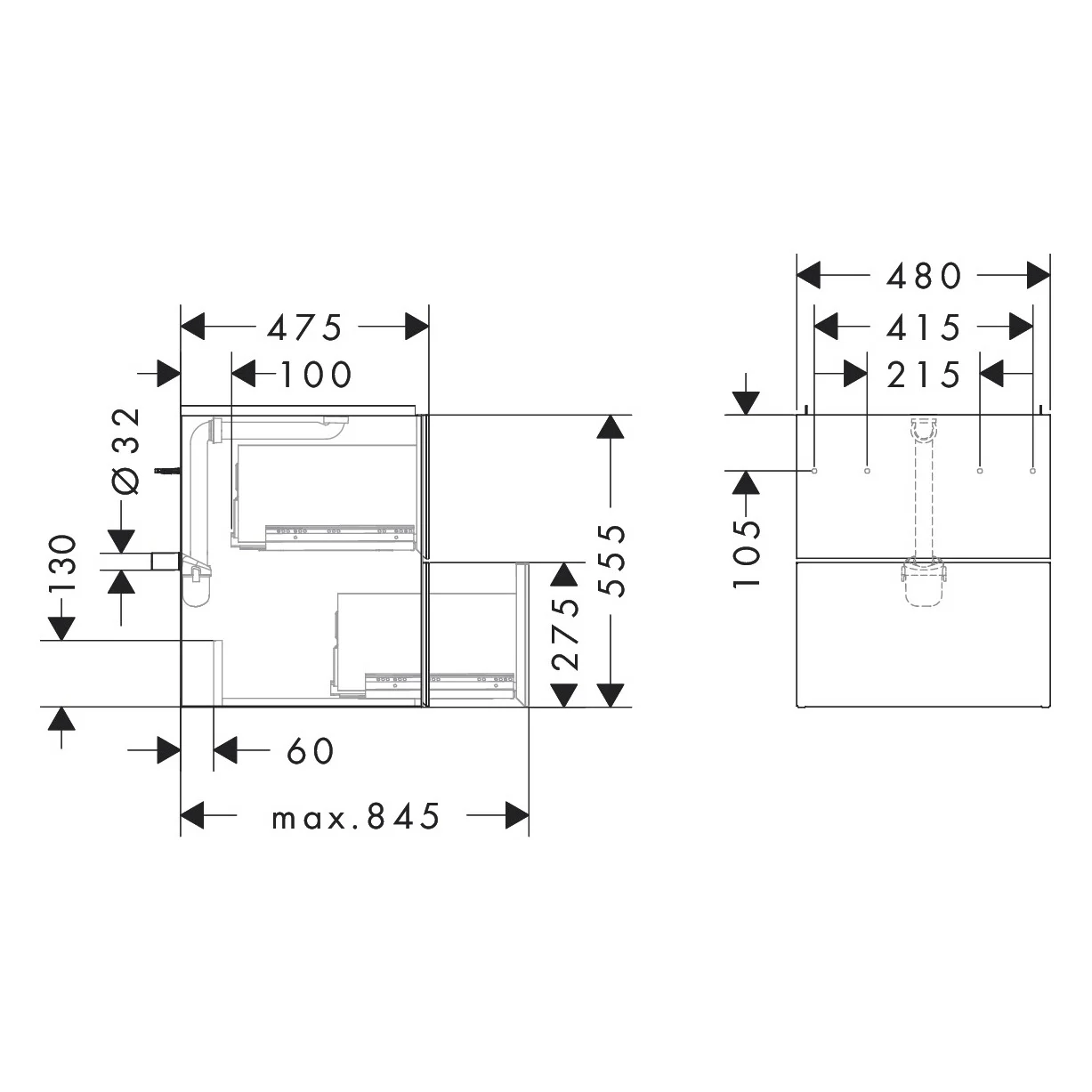 hansgrohe Xevolos E Waschtischunterschrank 48 x 47,5 cm mit 2 Schubkästen