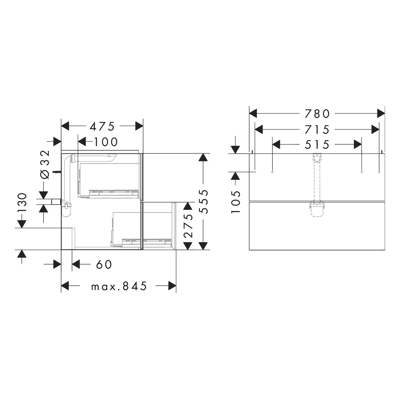 hansgrohe Xevolos E Waschtischunterschrank 78 x 47,5 cm mit 2 Schubkästen