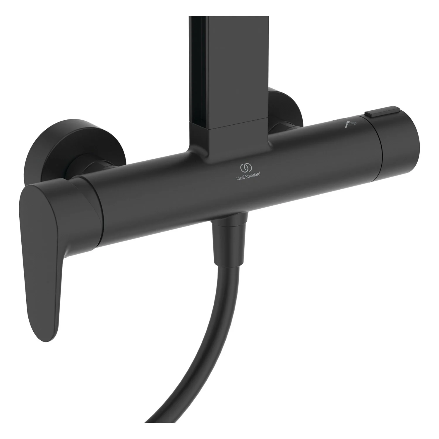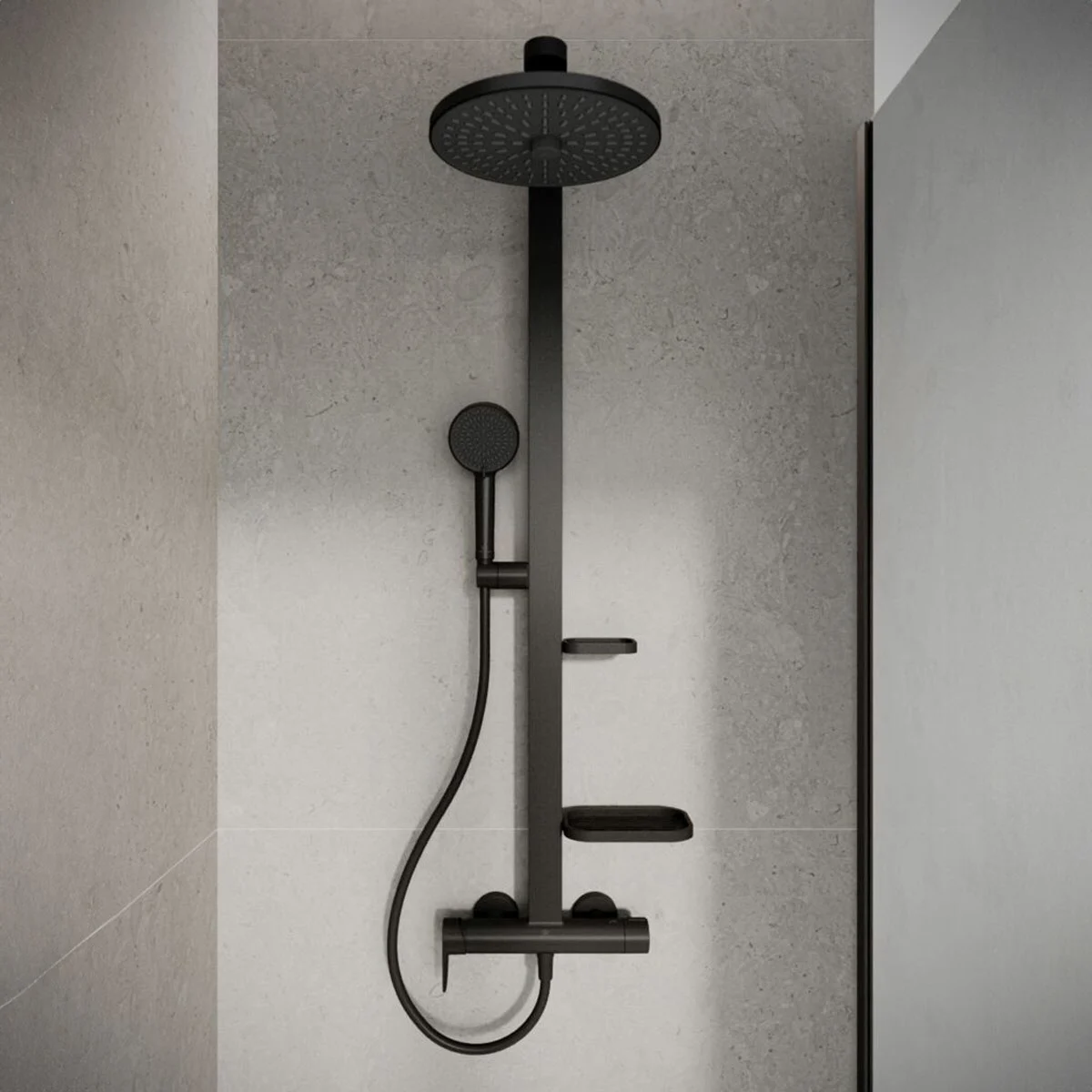 Ideal Standard Alu+ Duschsystem mit Ceraflow Brausearmatur, 2 Ablagen, 2-Funktions-Handbrause und 2-Funktions-Kopfbrause