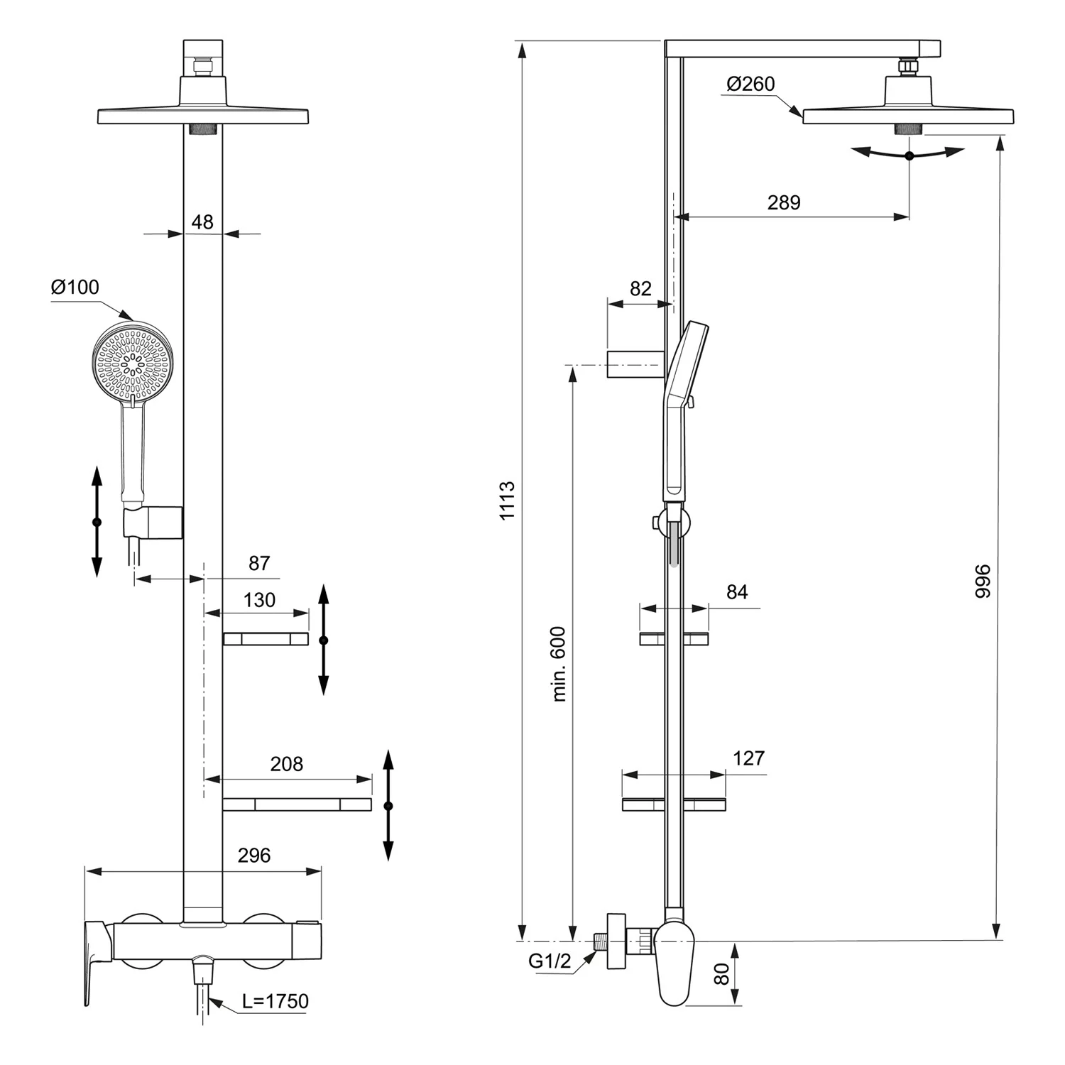 Ästhetischer Anspruch trifft auf hochwertige Performance: Mit dem Ideal Standard Duschsystem aus der Serie Alu+ erwarten Sie wohltuende Duschmomente für pure Entspannung. Genießen Sie sowohl bei der Hand- als auch bei der Regenbrause 2 Funktionen. Letztere verwöhnt mit den Strahlarten sanfter Regen und Regen. Die Handbrause massiert Sie mit der Funktion Massagestrahl und die Funktion sanfter Regen verwöhnt mit ultrafeinen Wassertröpfchen. Für Ihre persönlichen Duschutensilien finden Sie auf den beiden Ablagen ausreichend Platz. Das Duschsystem mit Einhebel-Brausearmatur verfügt über einen individuell einstellbaren Heißwassertemperaturbegrenzer und -einstellung mit Verbrühschutz. Die Cool-Body-Funktion verhindert Verbrühungen an der Armaturenoberfläche. Dank der FirmaFlow-Kartusche bietet die Armatur erstklassige Leistungen in Bezug auf Langlebigkeit und Komfort und steuert mit absoluter Präzision Wassertemperatur und -durchfluss. Dieser wird zudem auf effiziente 8 l/min bei der Handbrause und 12 l/min bei der Kopfbrause reduzieren ohne das Duscherlebnis zu beeinträchtigen. So schonen Sie sowohl die Umwelt, als auch Ihren Geldbeutel.