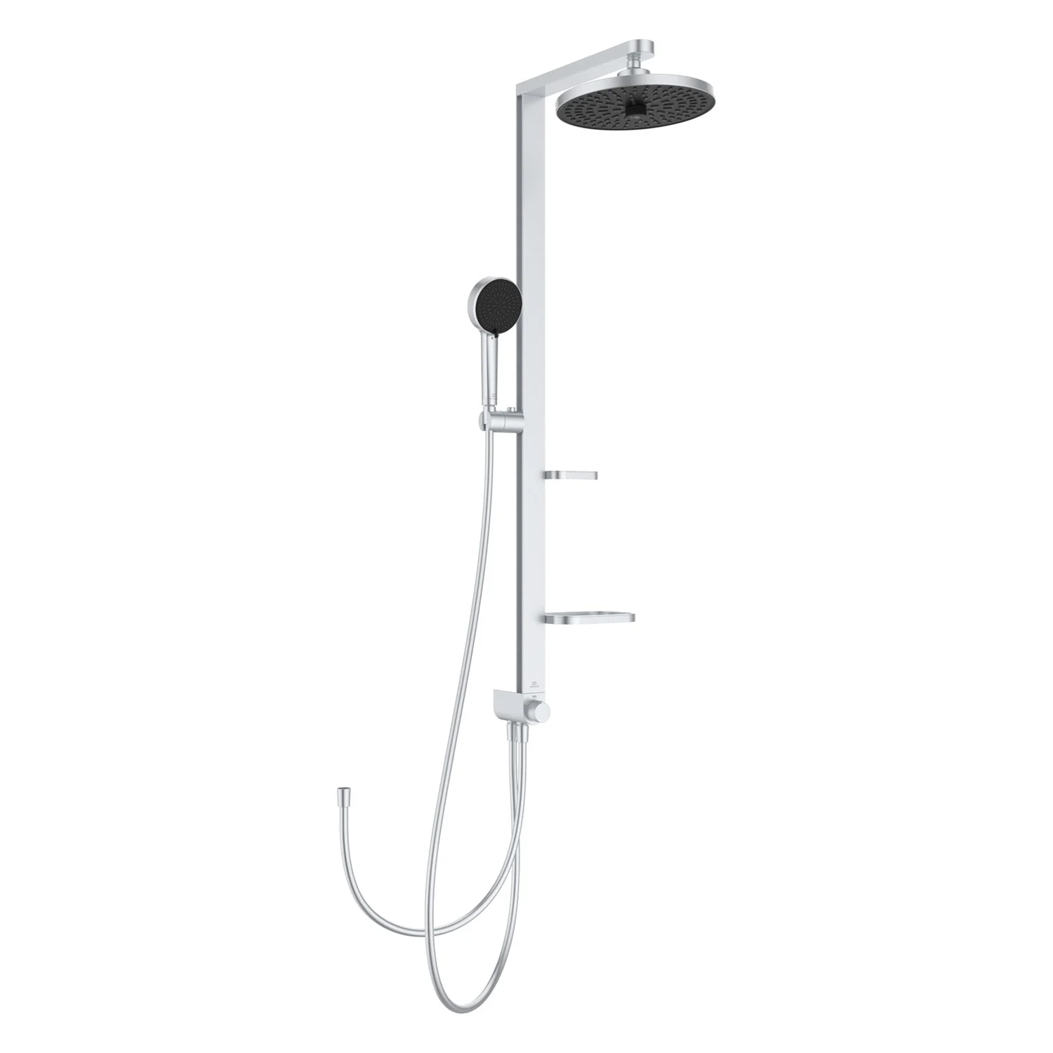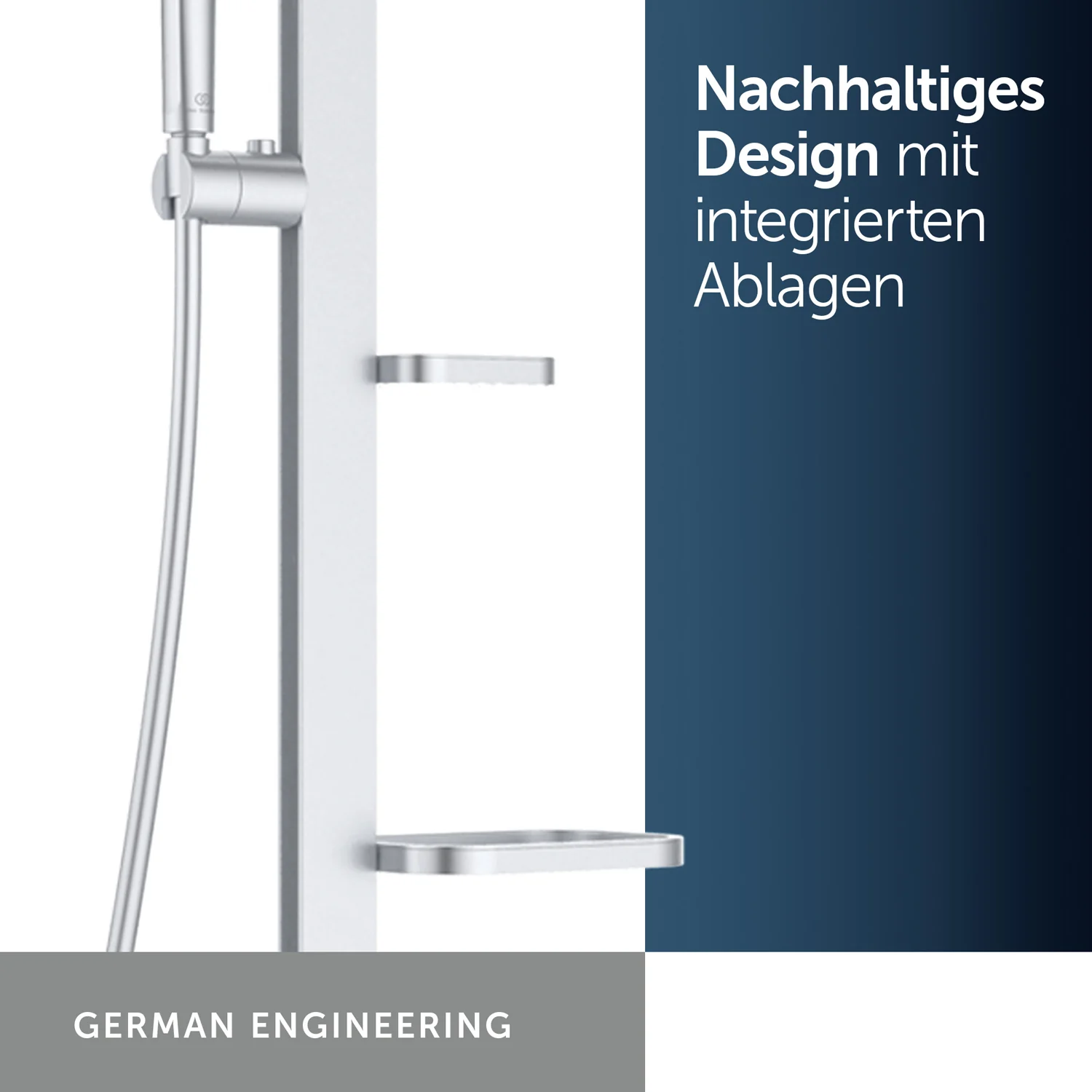 Ideal Standard Alu+ Duschsystem ohne Armatur, mit 2 Ablagen, 2-Funktions-Handbrause und 2-Funktions-Kopfbrause