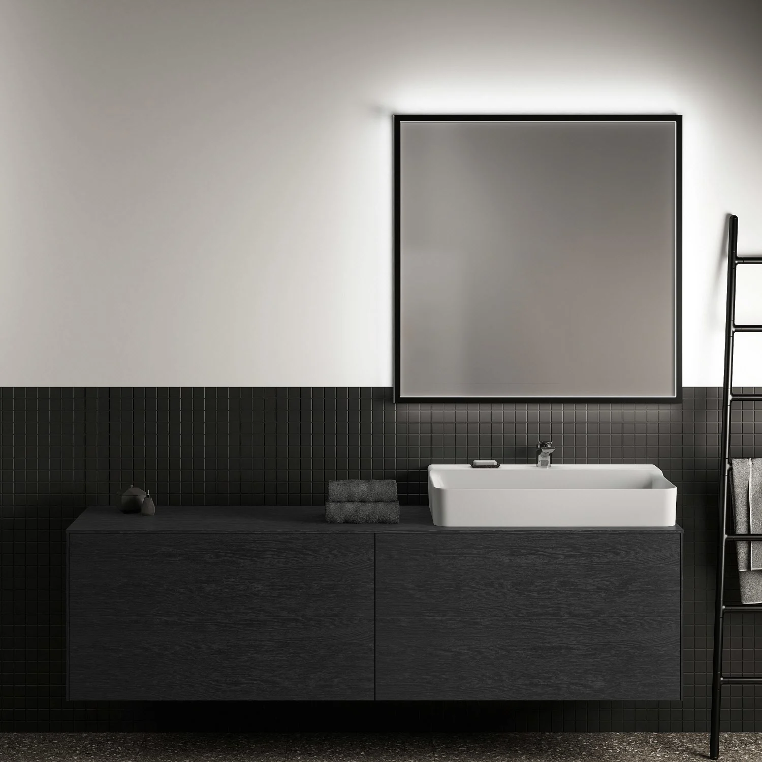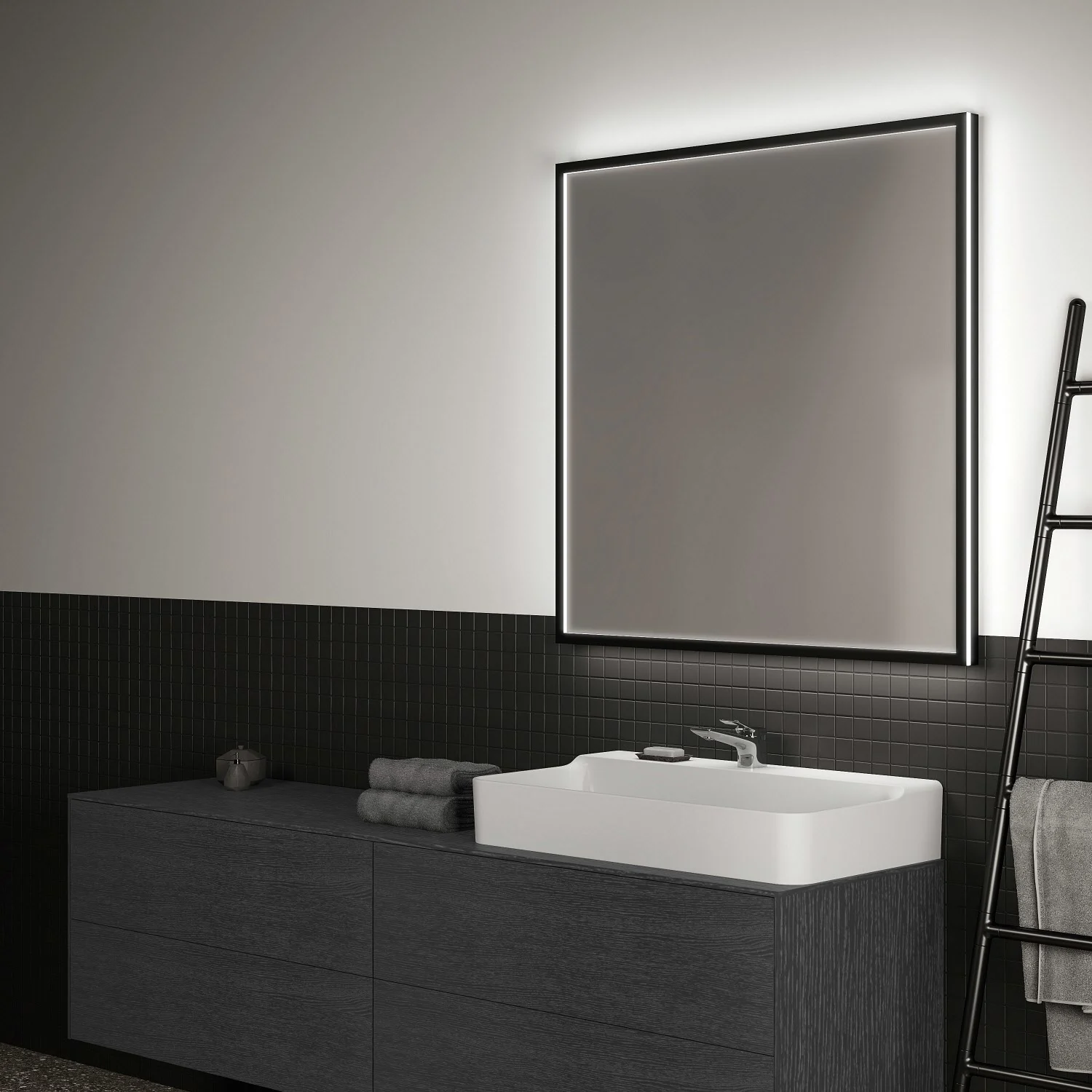 Ideal Standard Badspiegel Conca quadratisch 100 cm mit Beleuchtung und schwarzem Rahmen