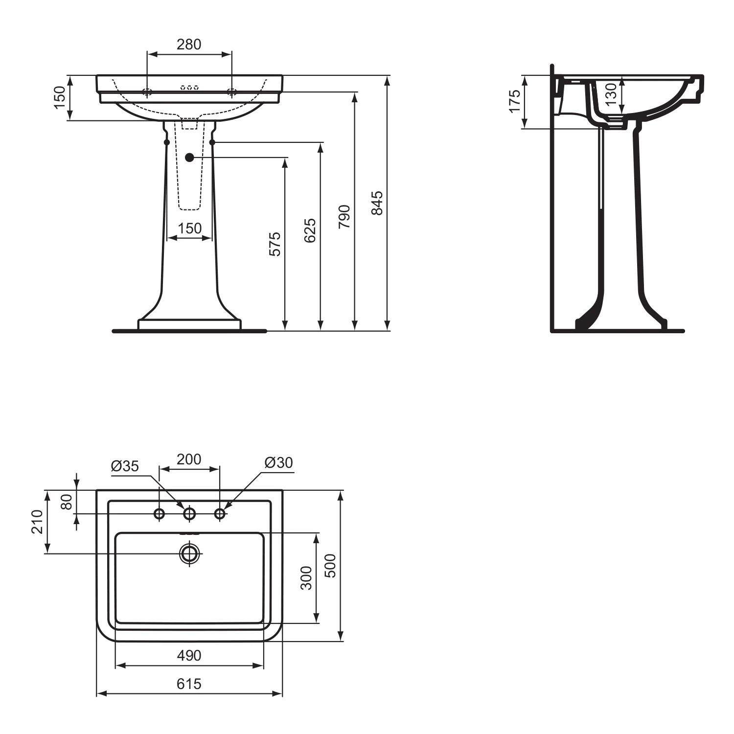 Ideal Standard Calla Waschtisch 61,5 cm, 3 Hahnlöcher, mit Überlauf