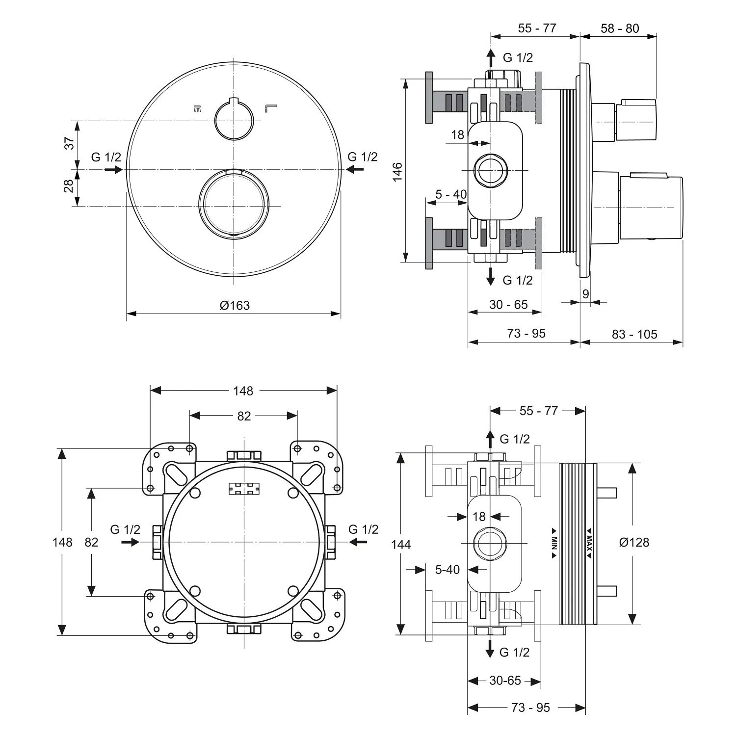 Ideal Standard CeraTherm T100 Armaturen-Paket Unterputz