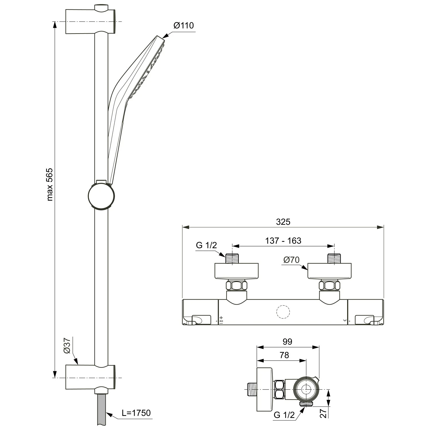 Ideal Standard CeraTherm T50 Brausekombination Aufputz mit Brausestange 60 cm