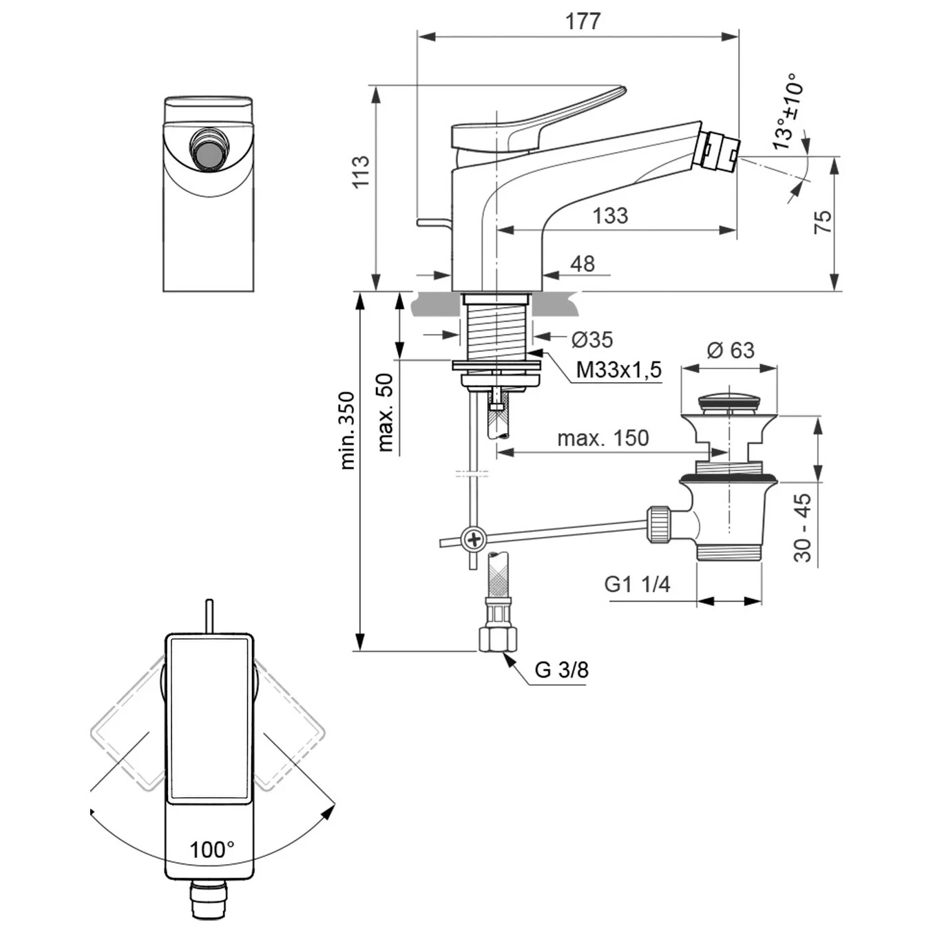 Ideal Standard Conca Bidetarmatur mit Ablaufgarnitur