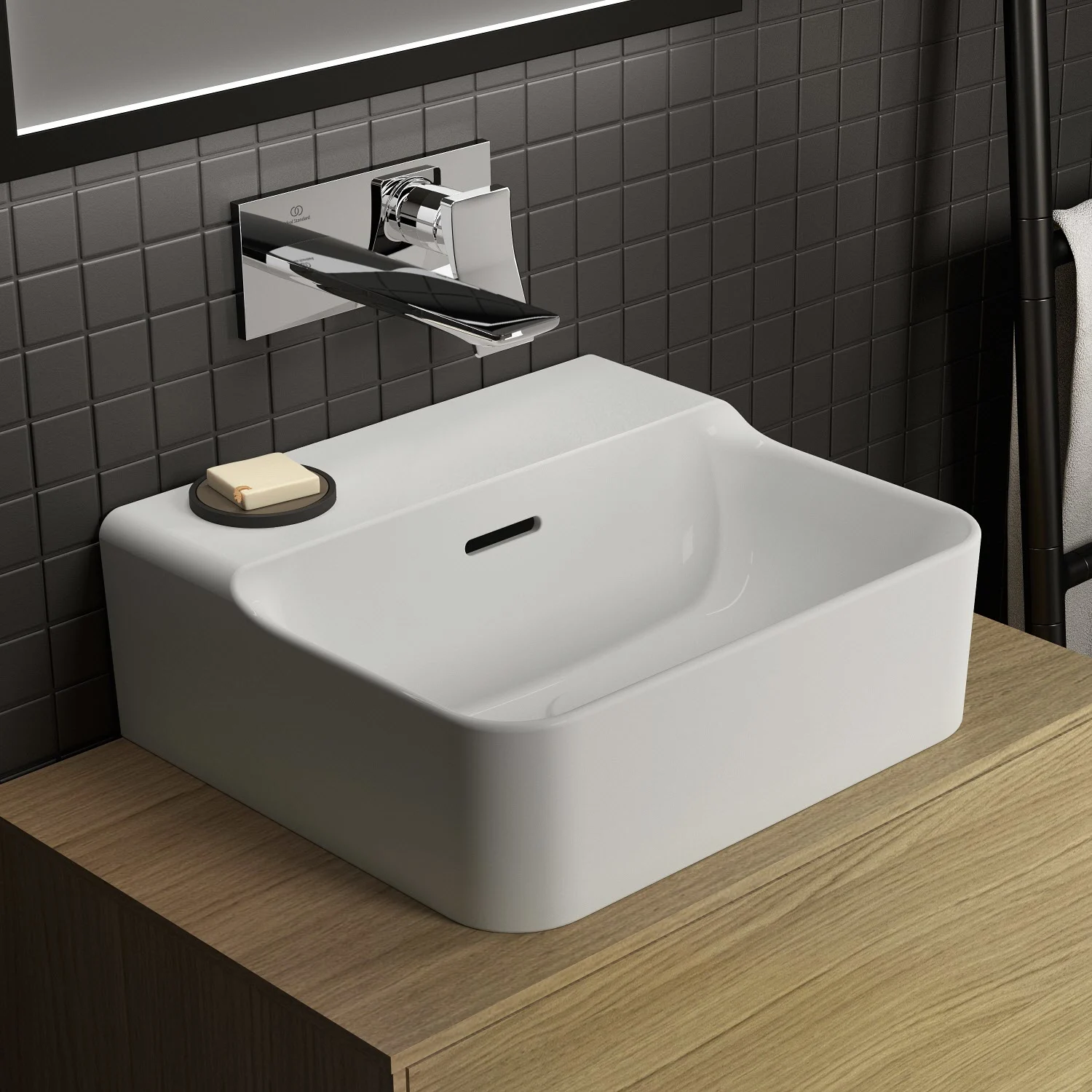 Ideal Standard Conca Handwaschbecken 40 cm, ohne Hahnloch, mit Überlauf, geschliffen