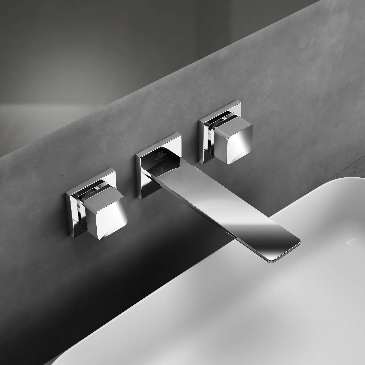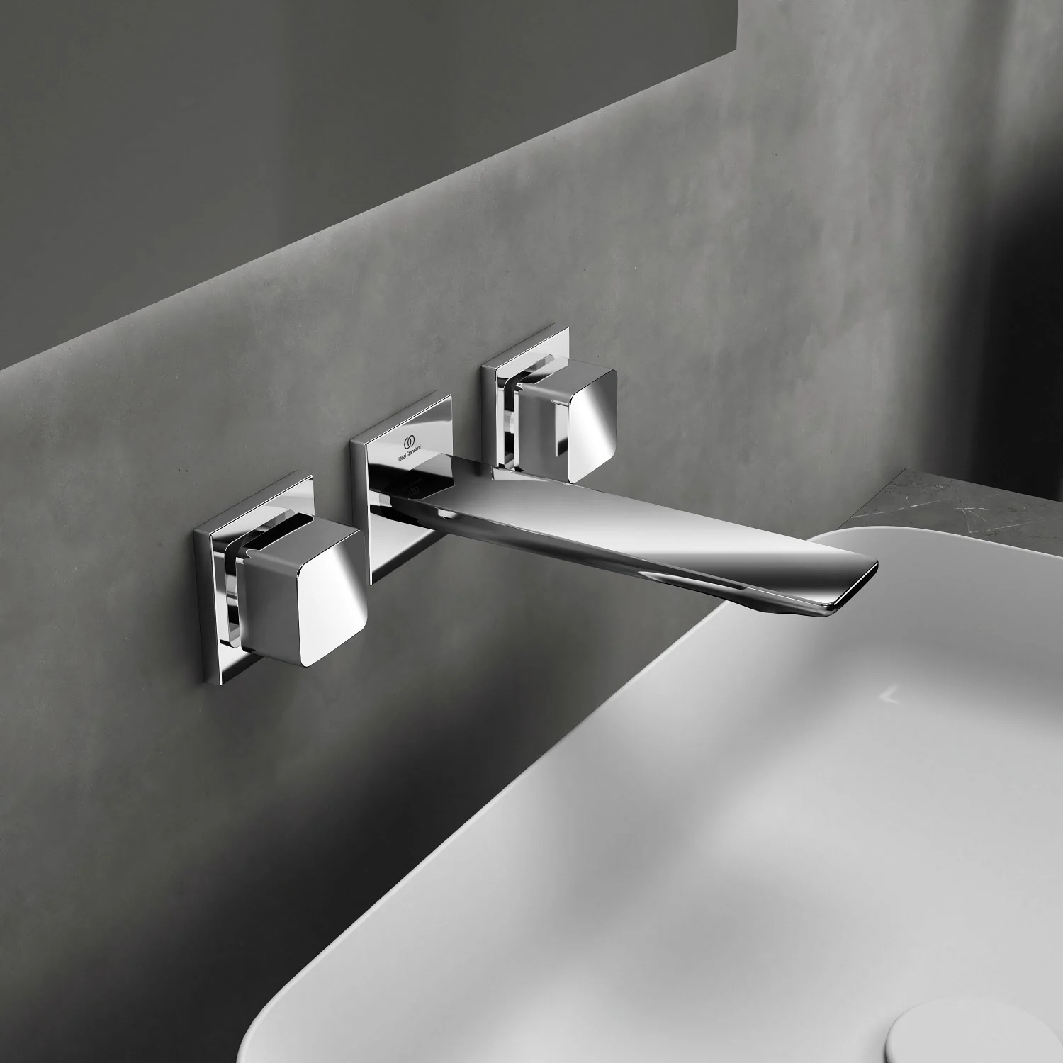 Ideal Standard Conca Wand-Waschtischarmatur, mit 3 Rosetten eckig, Auslauf 18 cm