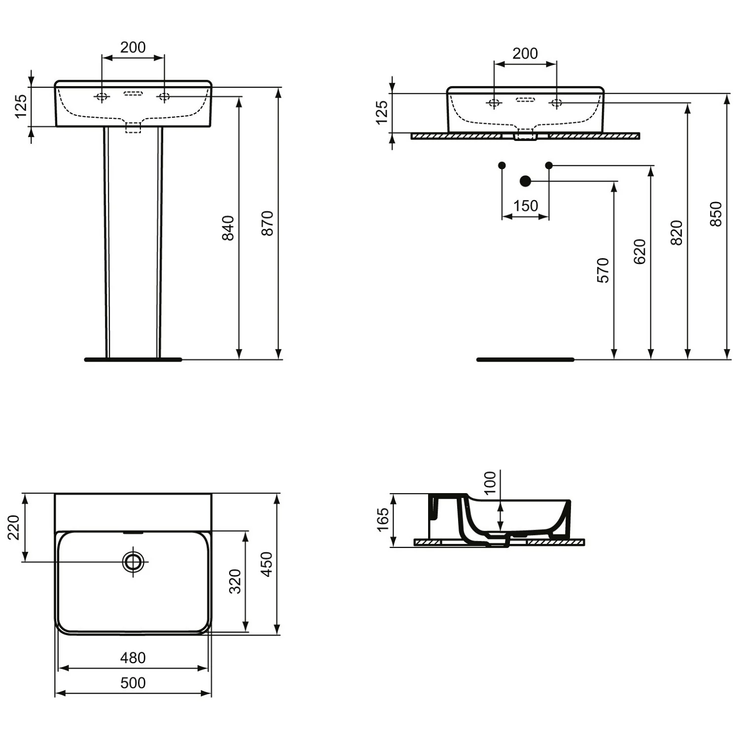 Ideal Standard Conca Waschtisch 50 cm, ohne Hahnloch, mit Überlauf