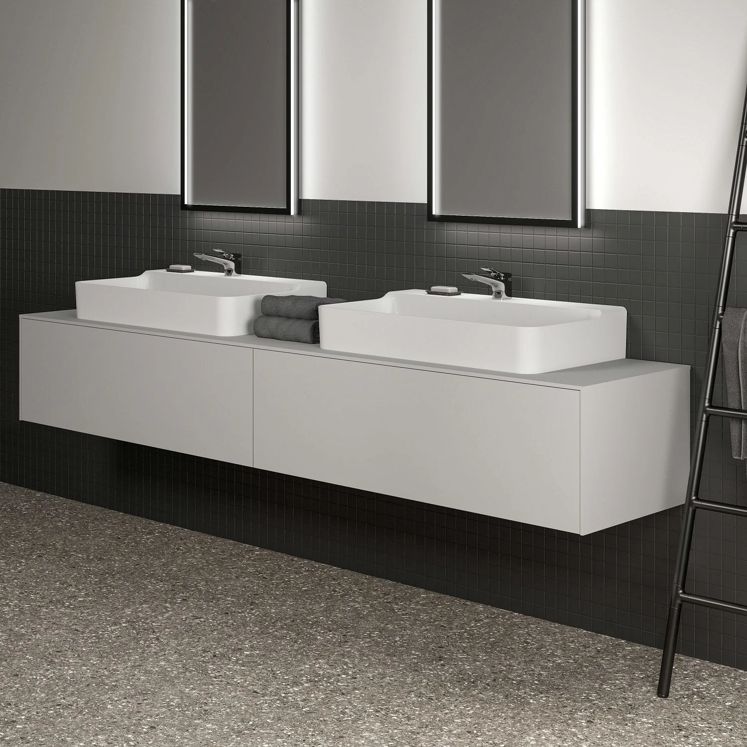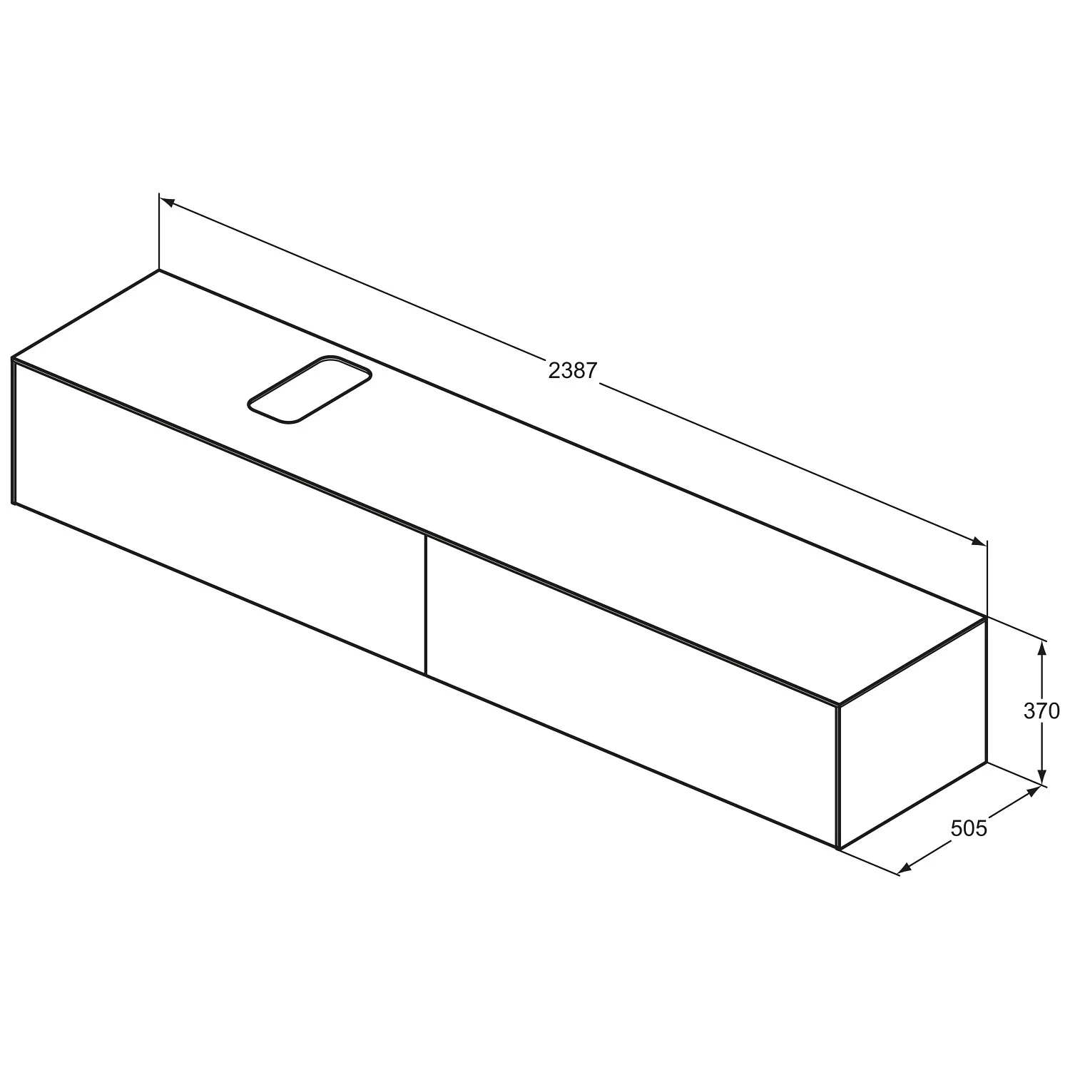 Ideal Standard Conca Waschtischunterschrank 240 cm, mit Ausschnitt wählbar, 2 Auszüge