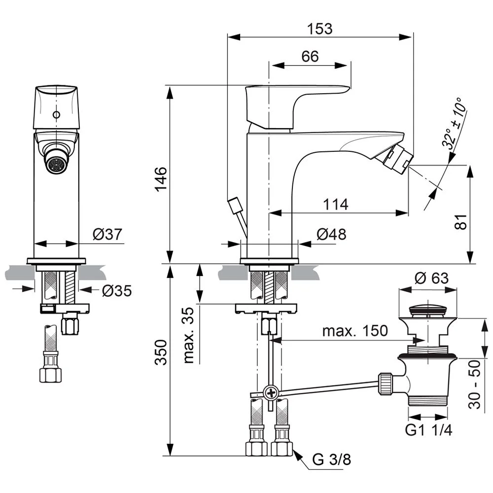 Ideal Standard Connect Air Bidetarmatur mit Ablaufgarnitur