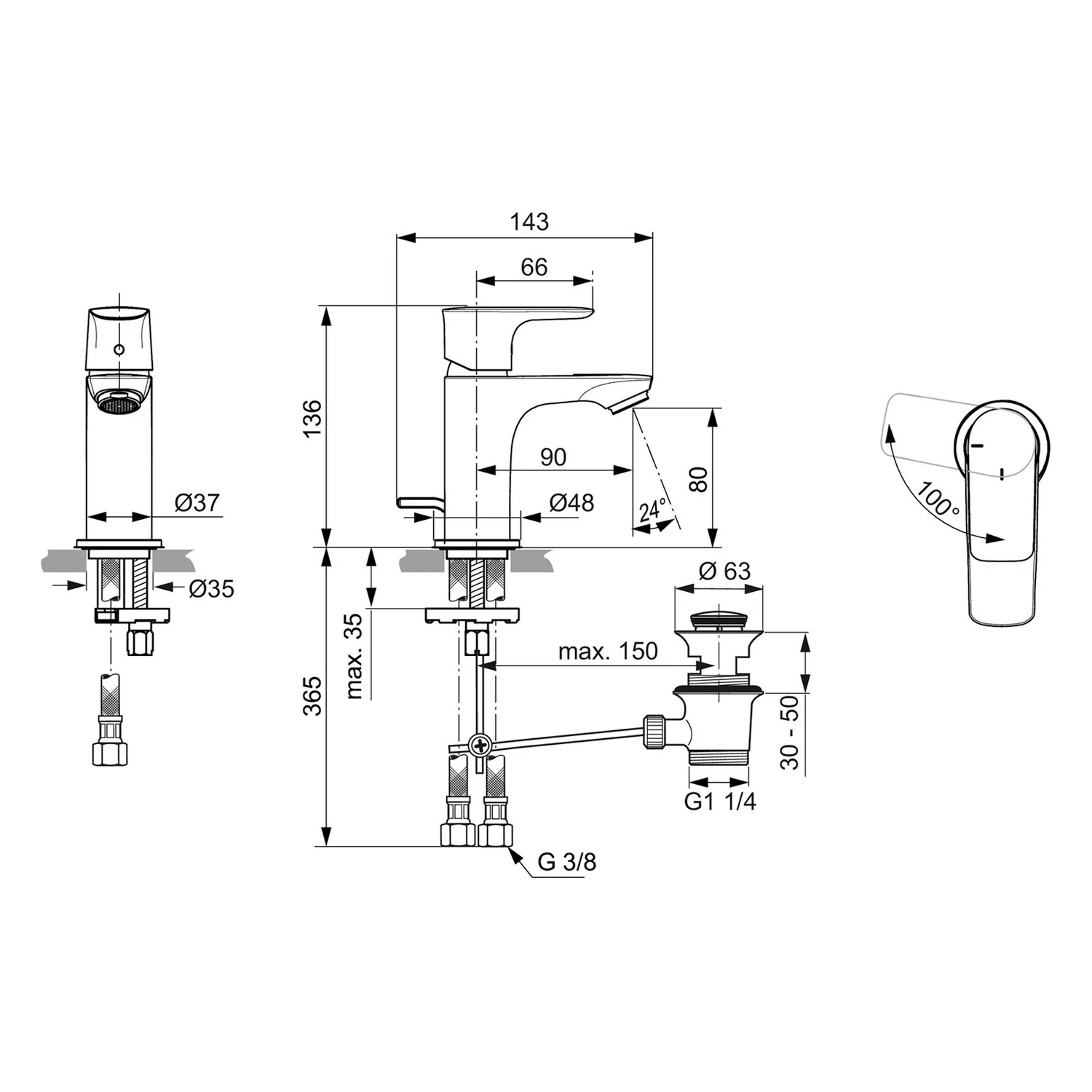 Ideal Standard Connect Air Piccolo Waschtischarmatur BlueStart mit Ablaufgarnitur