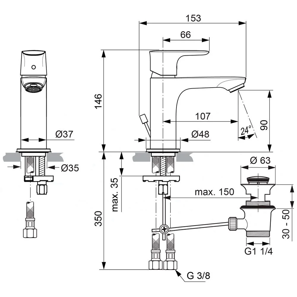 Ideal Standard Connect Air Slim Waschtischarmatur mit Ablaufgarnitur, Ausladung: 10,7 cm