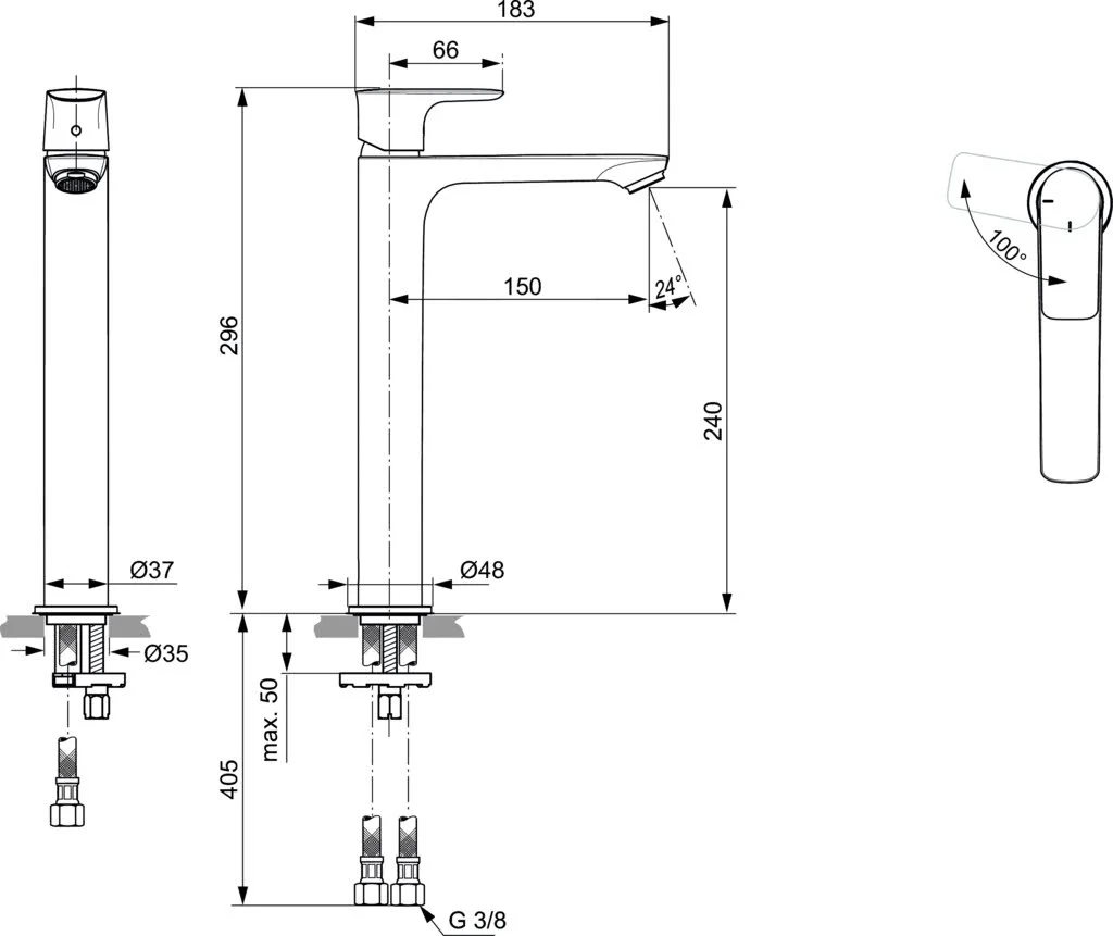 Ideal Standard Connect Air Slim Waschtischarmatur mit verlängertem Sockel, ohne Ablaufgarnitur