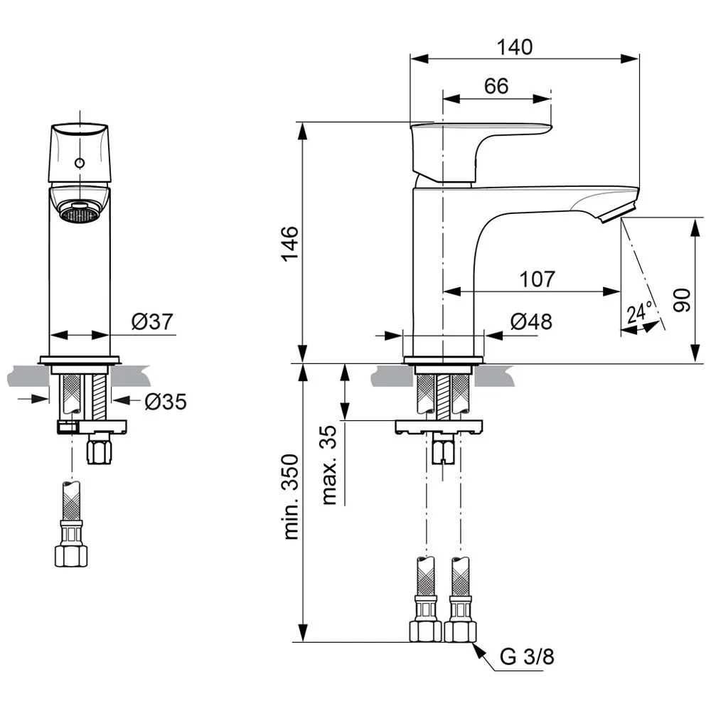 Ideal Standard Connect Air Slim Waschtischarmatur ohne Ablaufgarnitur, Ausladung: 10,7 cm