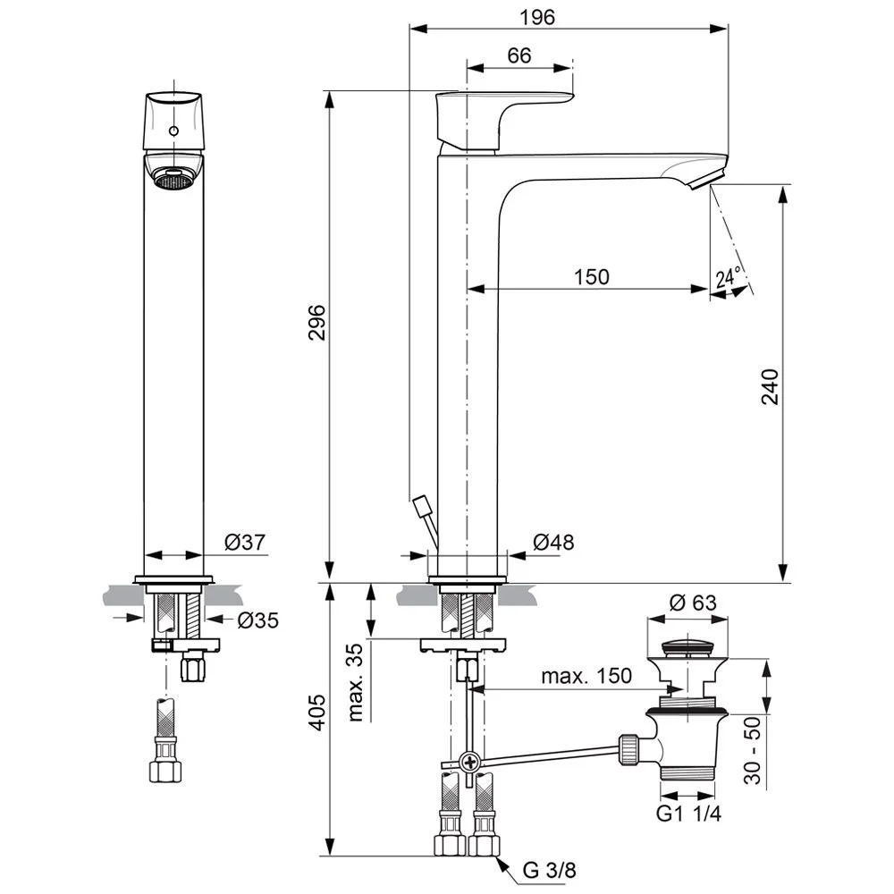 Ideal Standard Connect Air Waschtischarmatur mit verlängertem Sockel, mit Ablaufgarnitur