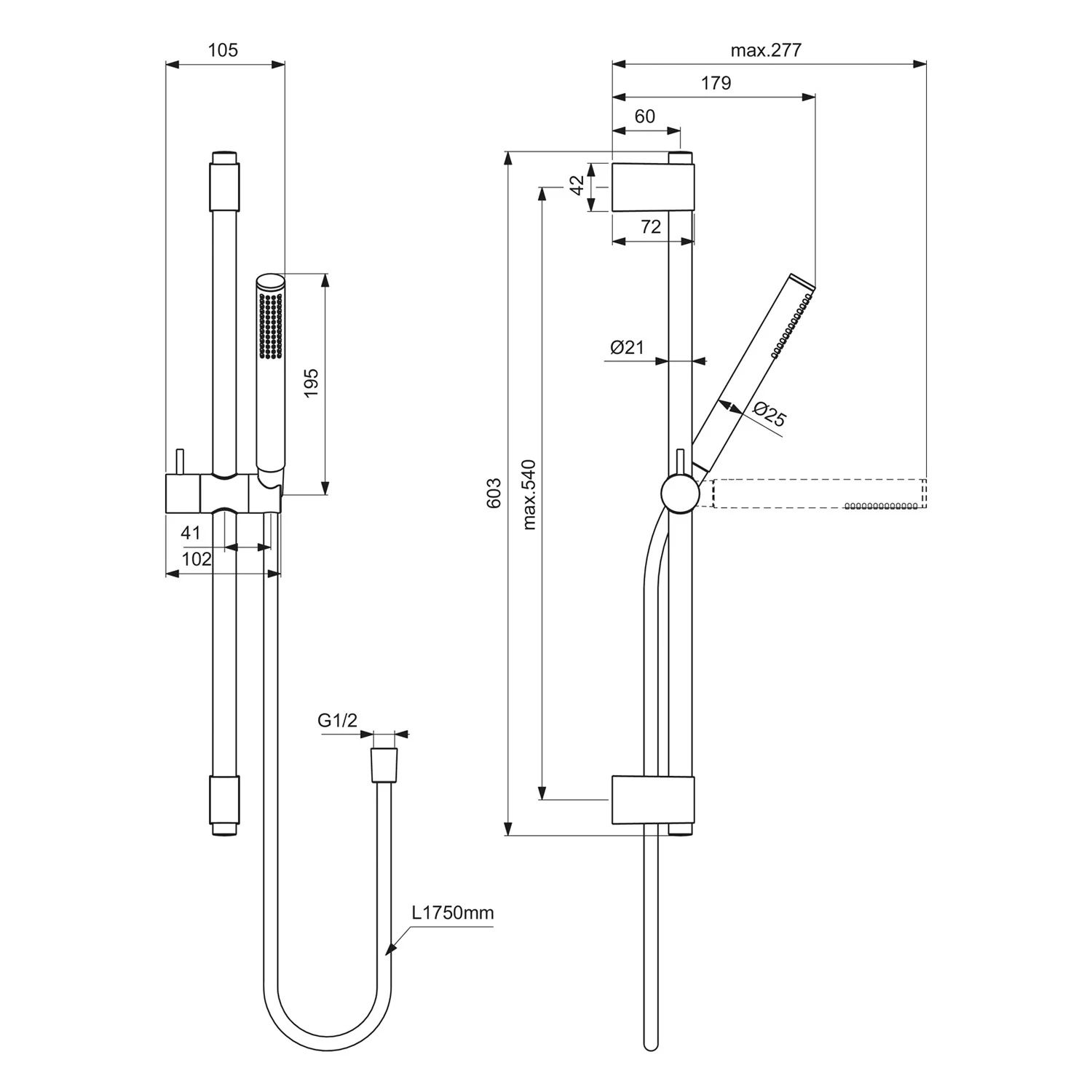 - Länge Brausestange: 60 cm