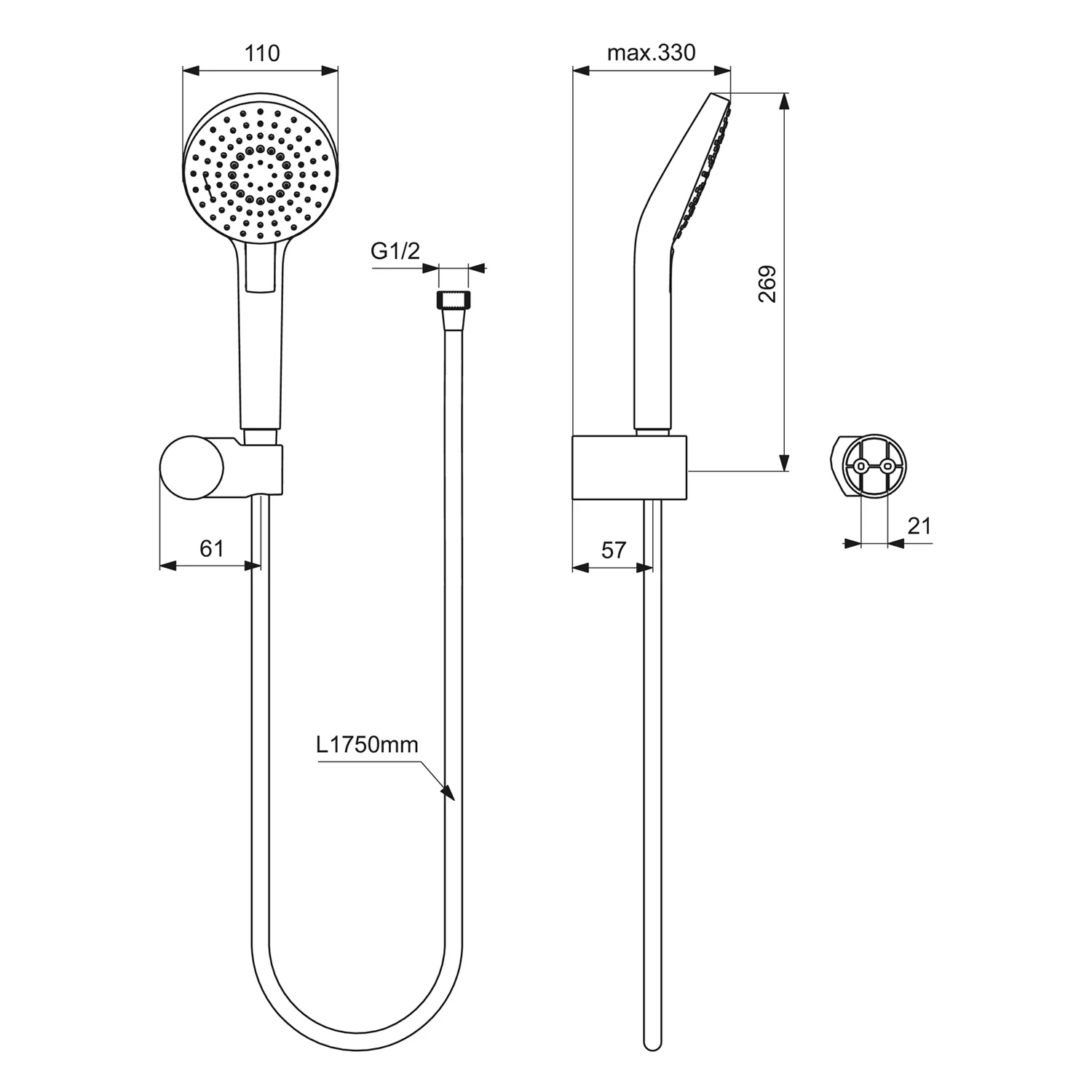 | Abmessungen: | Handbrause: Ø 11 Schlauch: 175 cm |