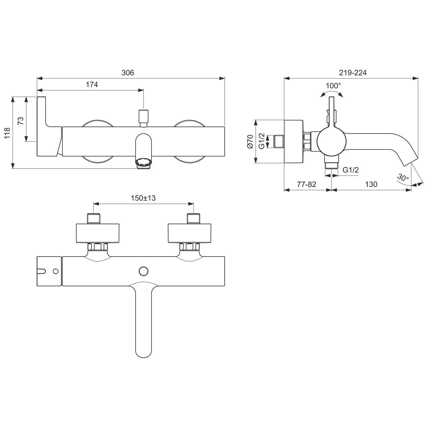 - Einhebel-Badarmatur AP DN 15 für Wandeinbau Aufputz
