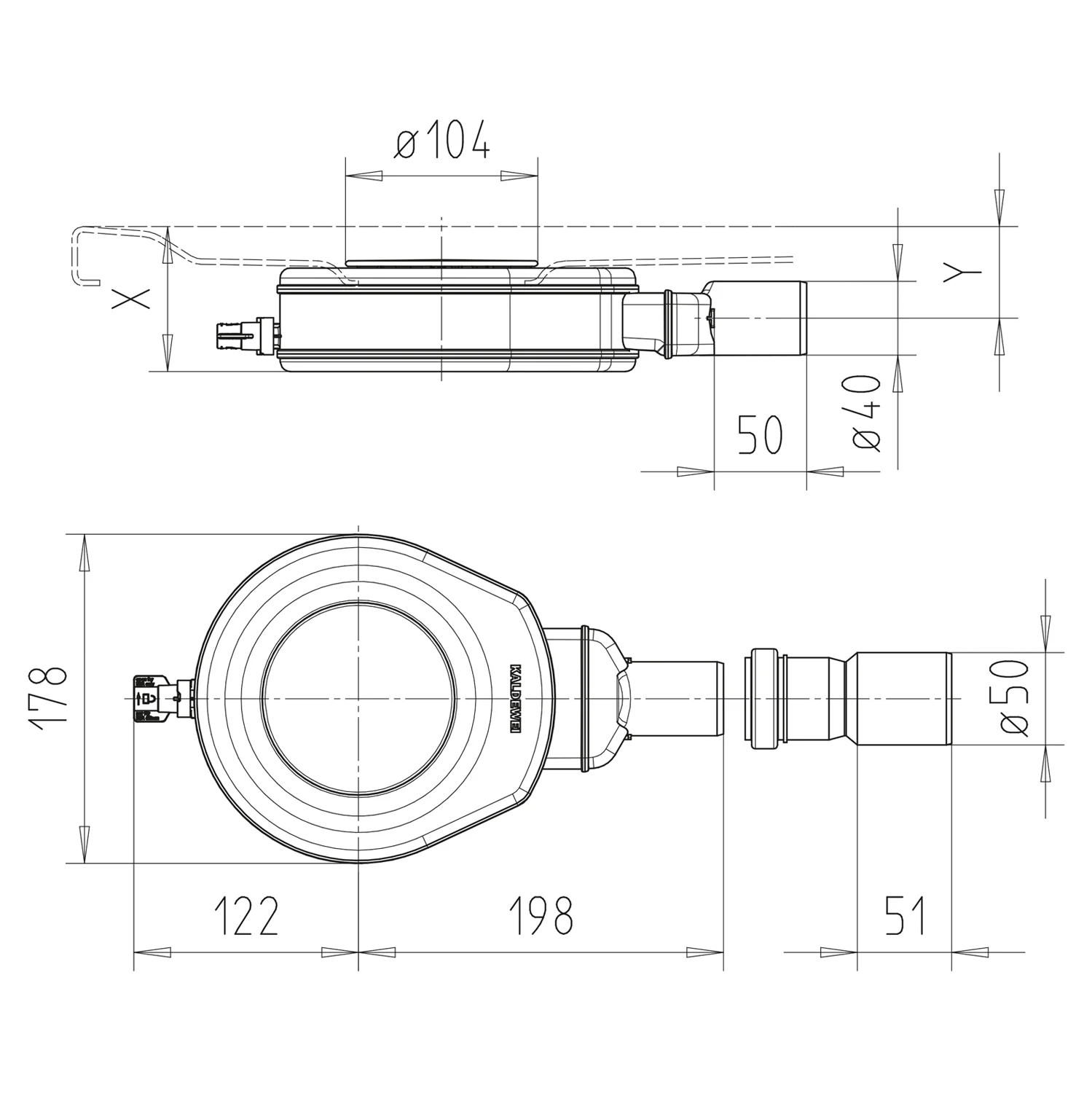 Kaldewei Ablaufgarnitur KA 90 waagerecht flach, Modell 4104