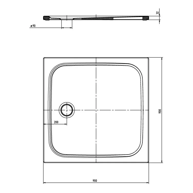 Kaldewei CAYONOPLAN 2254-5 Duschwanne 90 x 90 cm, mit Invisible Grip, inkl. Wannenträger extraflach
