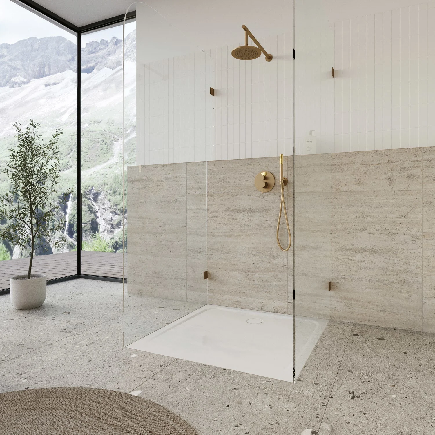 - bodenebene Duschfläche mit umlaufender Prägung