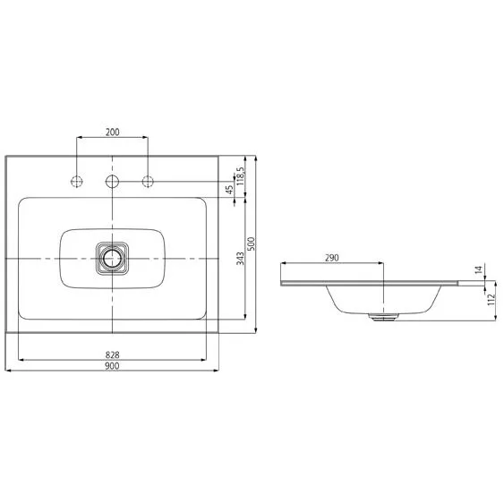 Kaldewei CONO Einbauwaschtisch 3081 ohne Hahnlochbohrung, 90 cm