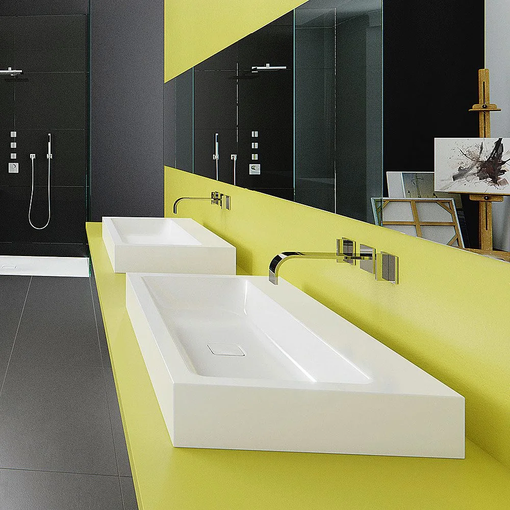 - mit 2x 3 Hahnlochbohrungen für Doppelwaschtisch