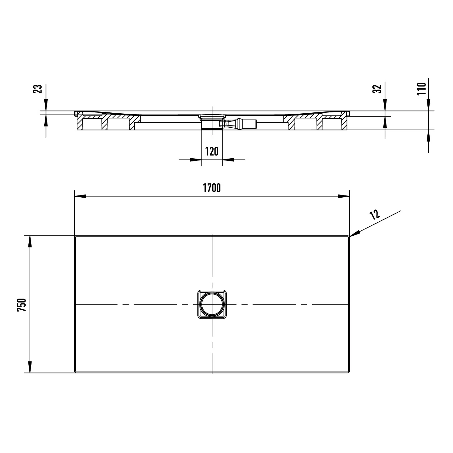 - Ablaufposition mittig mit Ablaufloch Ø 12 cm