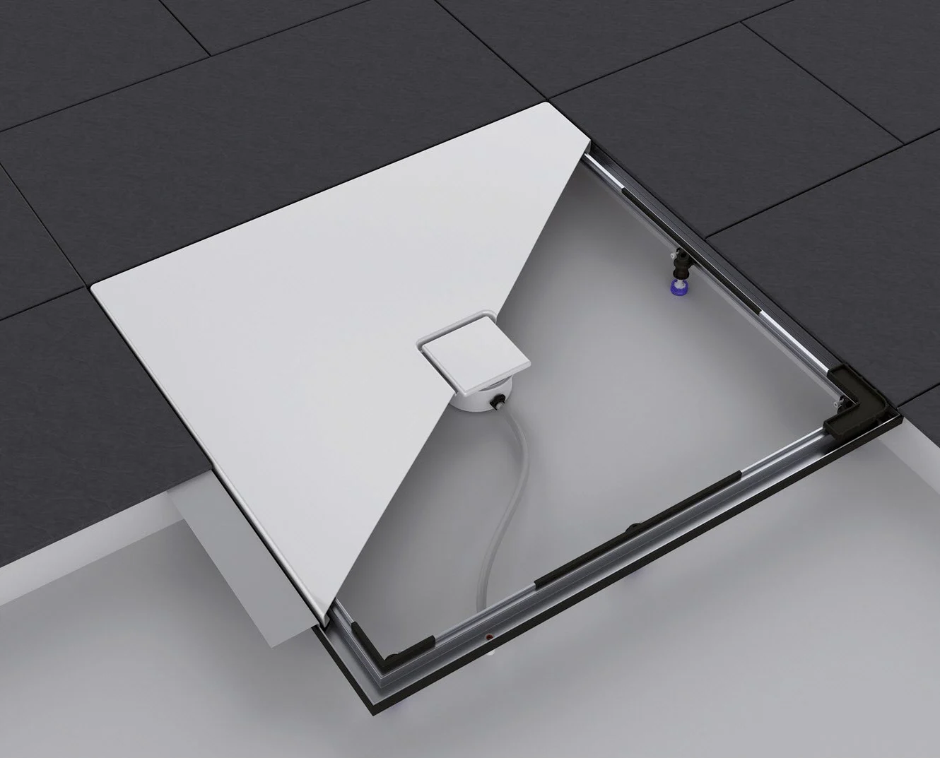 - für den einfachen und sicheren bodenebenen Einbau rechteckiger Duschflächen von Kaldewei