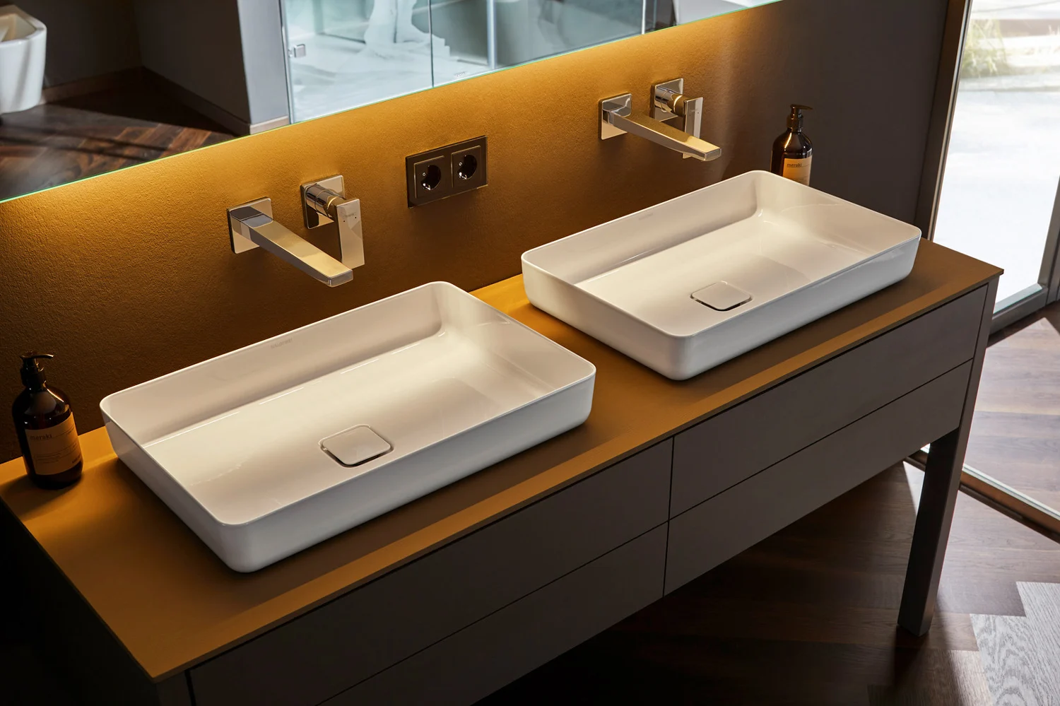 Die filigrane Gestaltung der MIENA Waschtisch-Schale von KALDEWEI, entworfen von der renommierten Designerin Anke Salomon, verkörpert eine zeitlose Ästhetik, die sich nahtlos in jedes Badkonzept einfügt. Besonders in Kombination mit hochwertigen Armaturen entfaltet die Schale ihre volle Wirkung und wird zum ikonischen Element in der Badgestaltung.