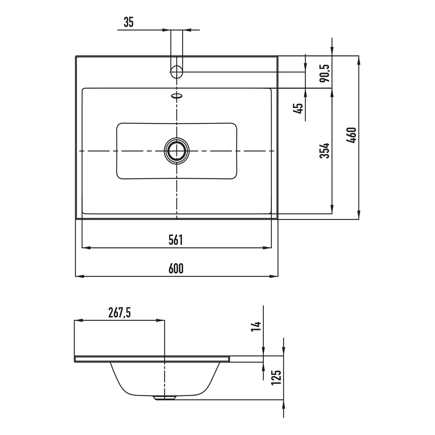 Eleganter Rechteckwaschtisch in klassisch puristischem Design und klarer, zeitloser Form.