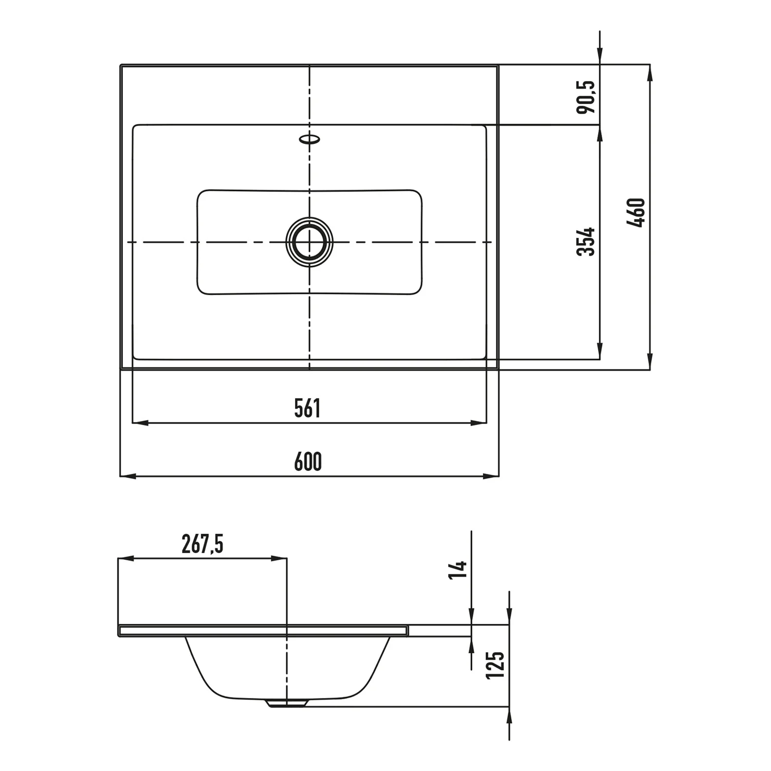 Kaldewei PURO Einbauwaschtisch 3151 ohne Hahnlochbohrung, 60 cm